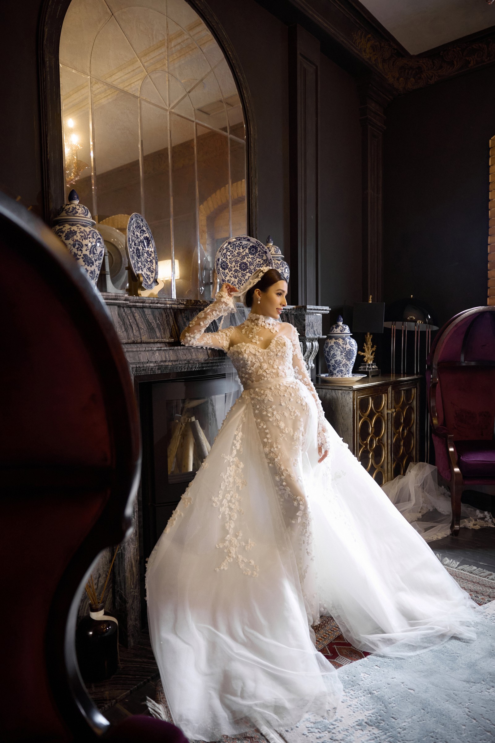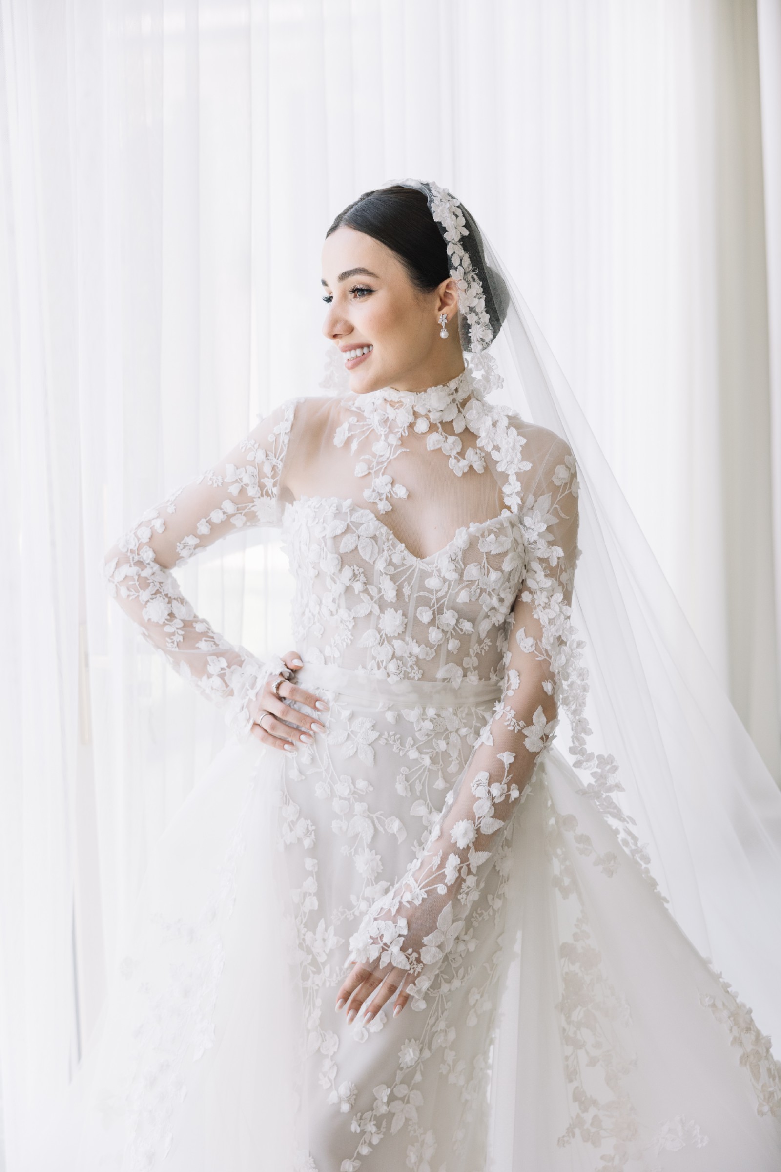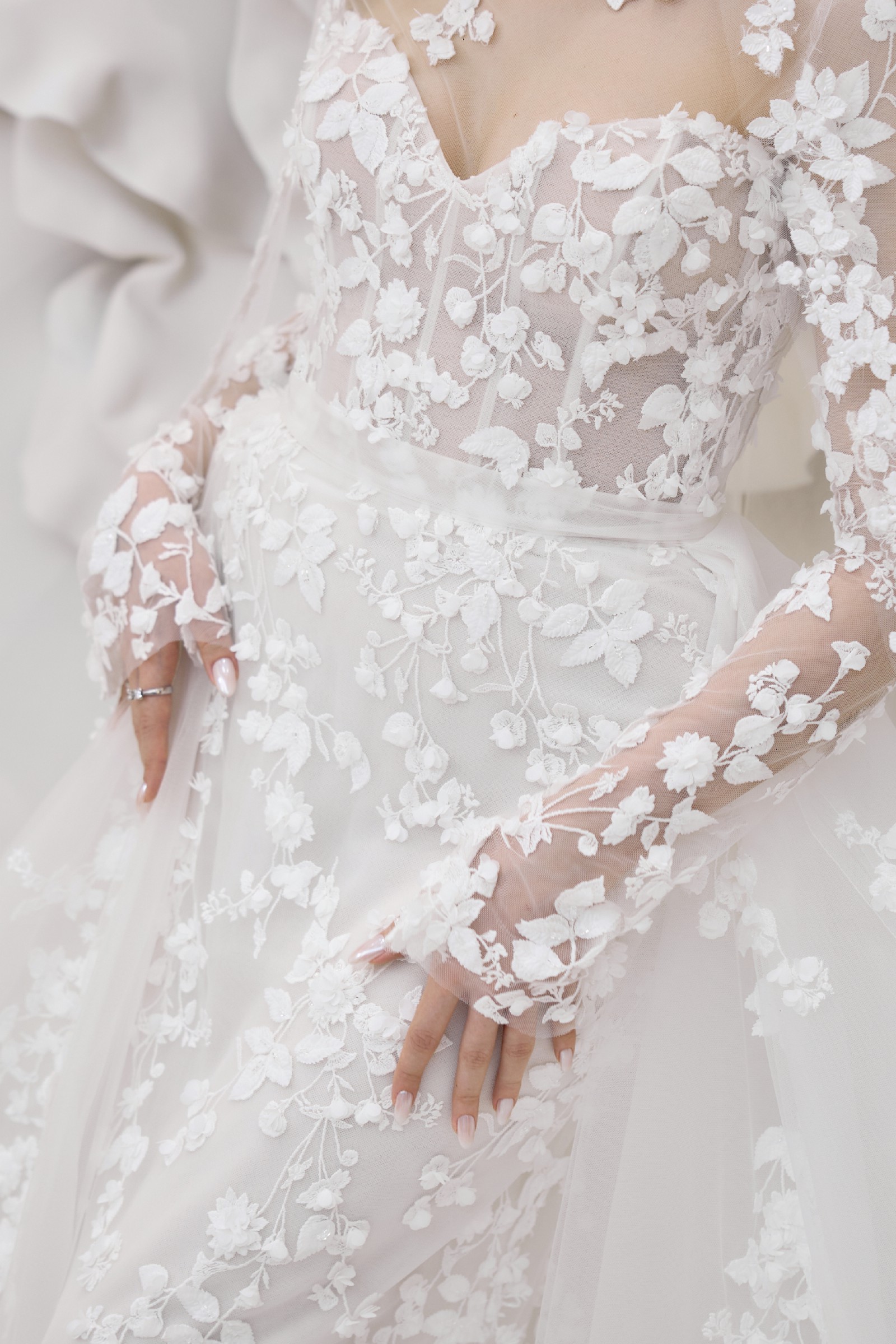 It’s a Vakko Wedding dress from new collection Spring-Summer 2025, bought at Vakko store in Istanbul, Zorlu Center. Romantic three-piece wedding ensemble consisting of a sheer embroidered bodysuit, a strapless corset dress, and a detachable overskirt. The bodysuit, with its long sleeves and high neckline, is made of semi-sheer tulle and delicately embellished with 3D floral embroidery, creating an elegant second-skin effect. The strapless corset dress provides structure and a flattering silhouette, while the detachable overskirt adds dramatic volume for the ceremony. Once removed, the look transforms into a lighter, more modern style — perfect for dancing and the evening reception. Worn once, professionally cleaned, and in perfect condition — ready to make another bride’s day unforgettable. I’m selling dress only, without veil.