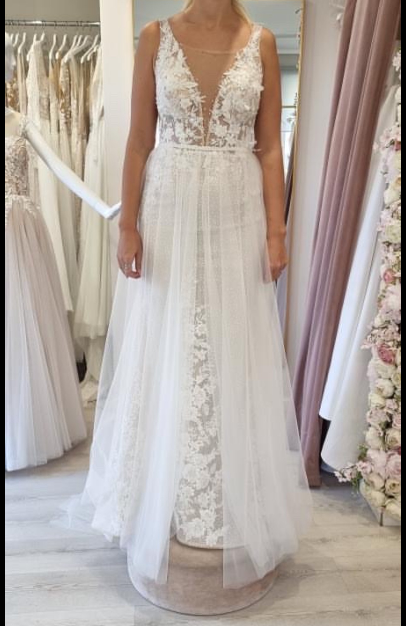 Only worn once and in pristine condition, this dress is ready to be loved again. I hope another bride will find the same joy in wearing it as I did. It’s more than just a dress; it’s a piece of the dream, waiting to create new memories.