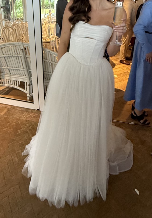 Also taken up slightly in the front to not trip on the tulle. None of the train has been shortened.