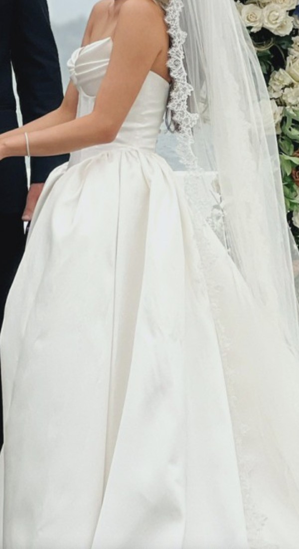 Such a beautiful piece and would love for someone to love it as much as I did. It looks brand new and was professionally steamed and cleaned. It is ready for its new home. The dress was way out of my budget when I bought it so I am having to sell it.
