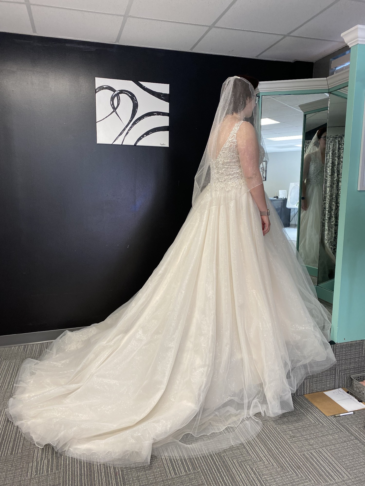 As I prepare to pass on this cherished gown to another bride, I hope it brings as much joy and love as it did for me. It's in excellent condition and ready to be the centerpiece of another magical day. If you’re looking for a dress that will leave memories etched in time, this is it.