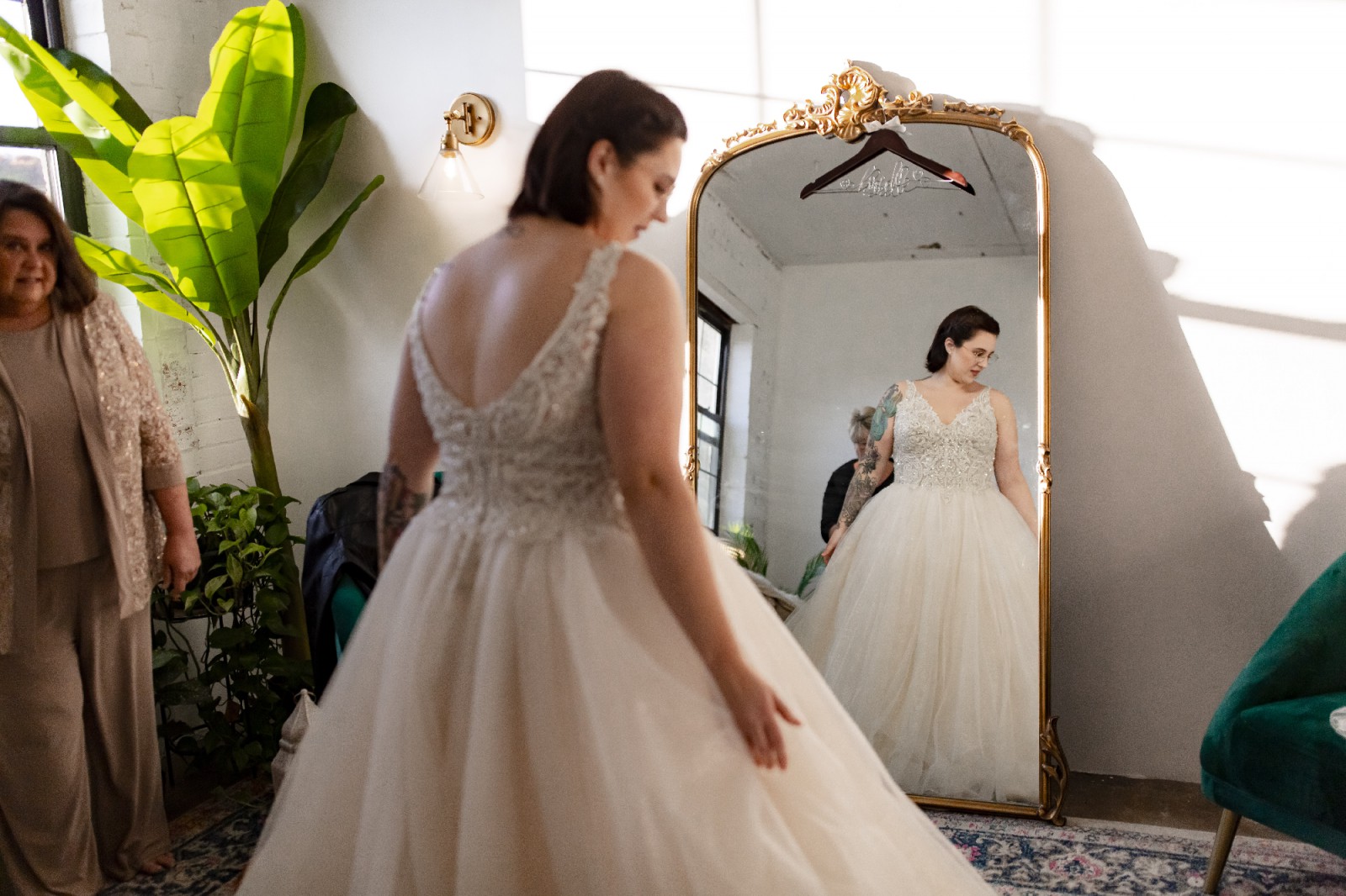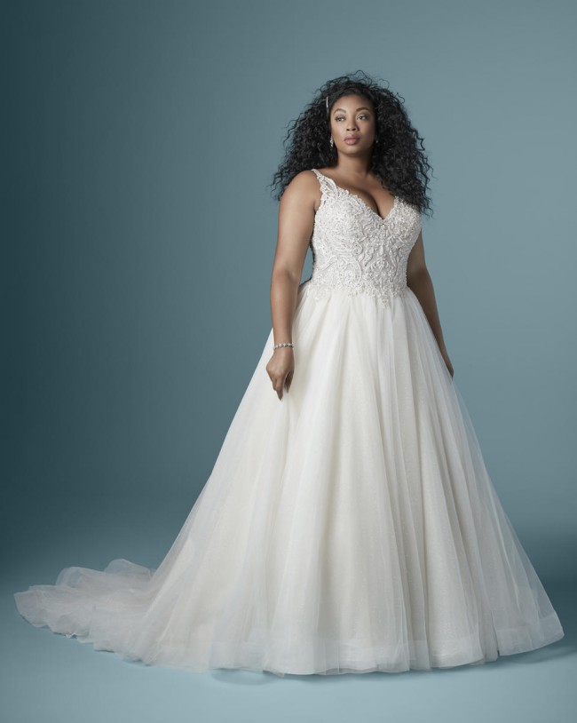 This stunning Taylor Lynette by Maggie Sottero was the dress of my dreams. The enchanting ballgown silhouette perfectly accentuates curves while providing a comfortable fit, allowing me to dance the night away with ease. The V-neckline adds a touch of modern elegance, complemented by delicate straps that showcase my shoulders beautifully.