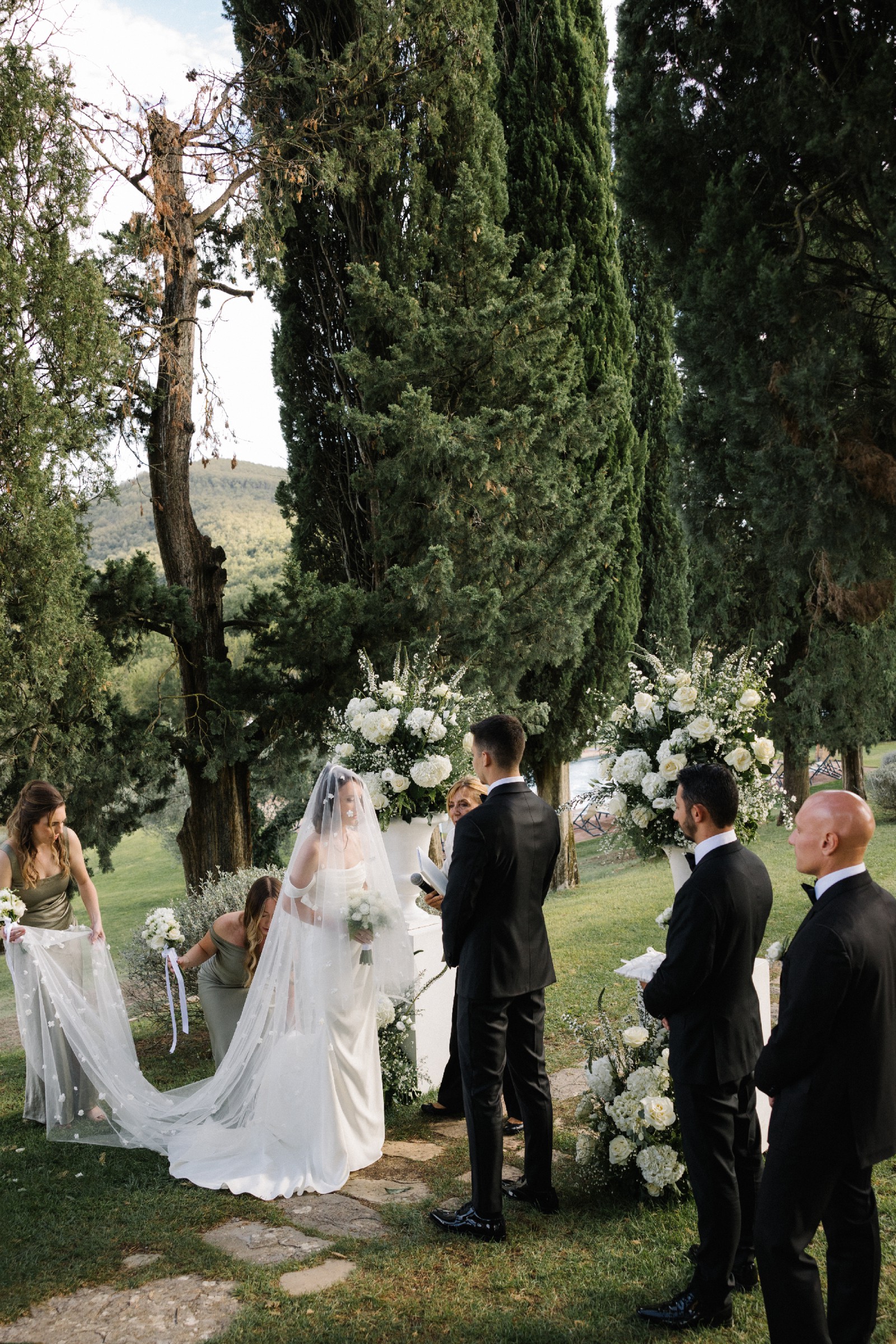 Veil: Custom made from Lamnhi Bridal, included at no additional charge if you'd like. It's cathedral length, two-tier, in soft ivory, with 3d flowers from head-to-toe.