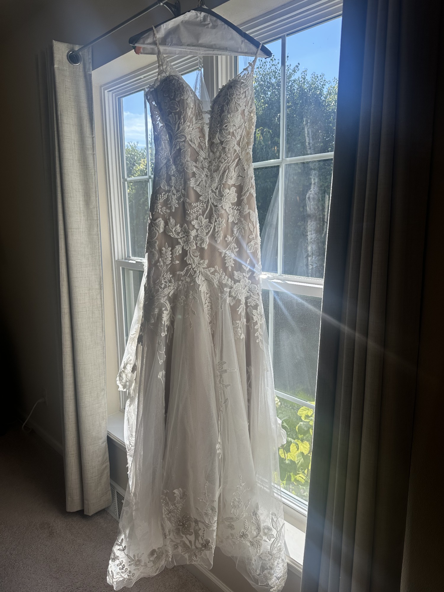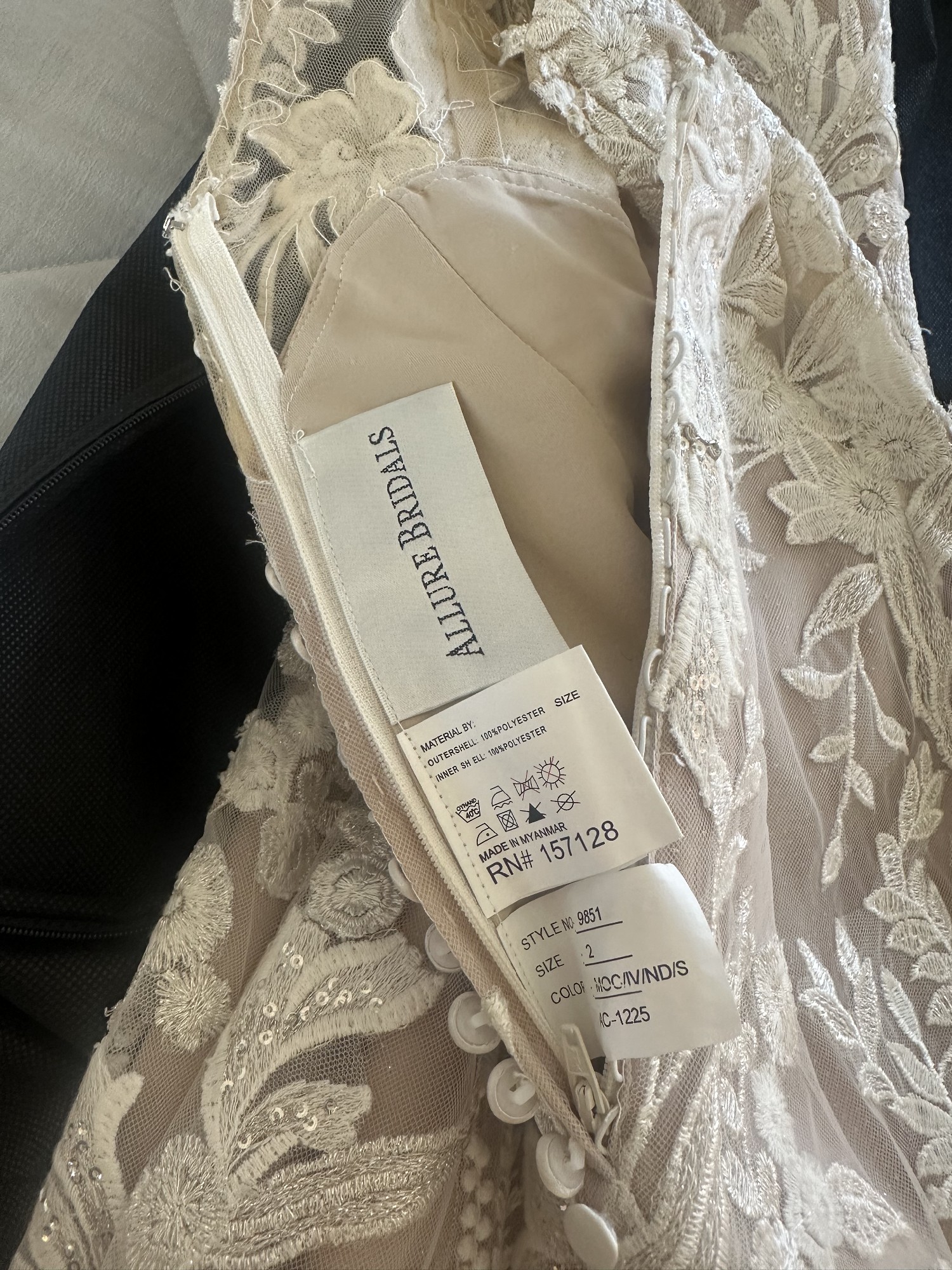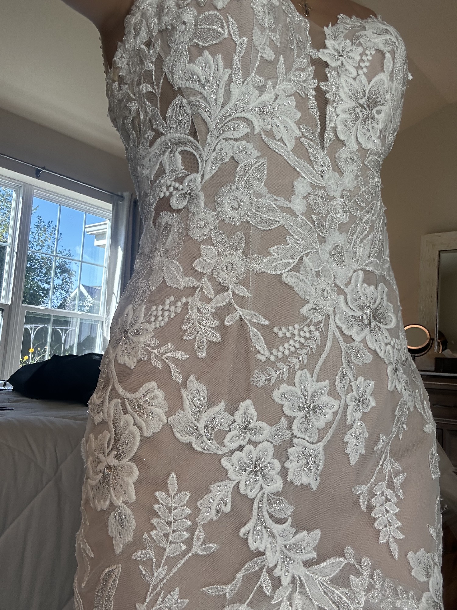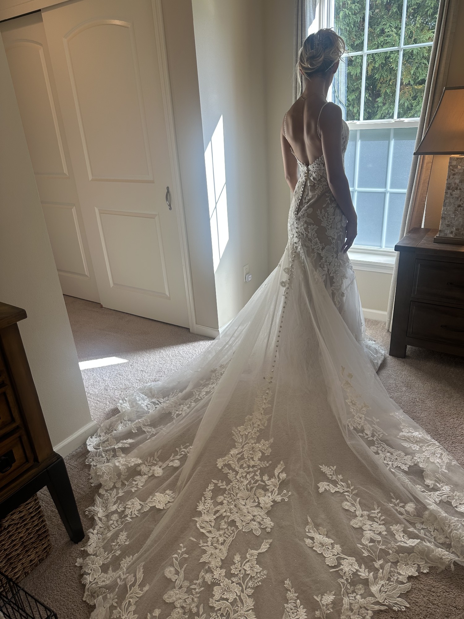 Never worn, other than during minimal alterations and try on photos! I decided to buy a completely different dress!