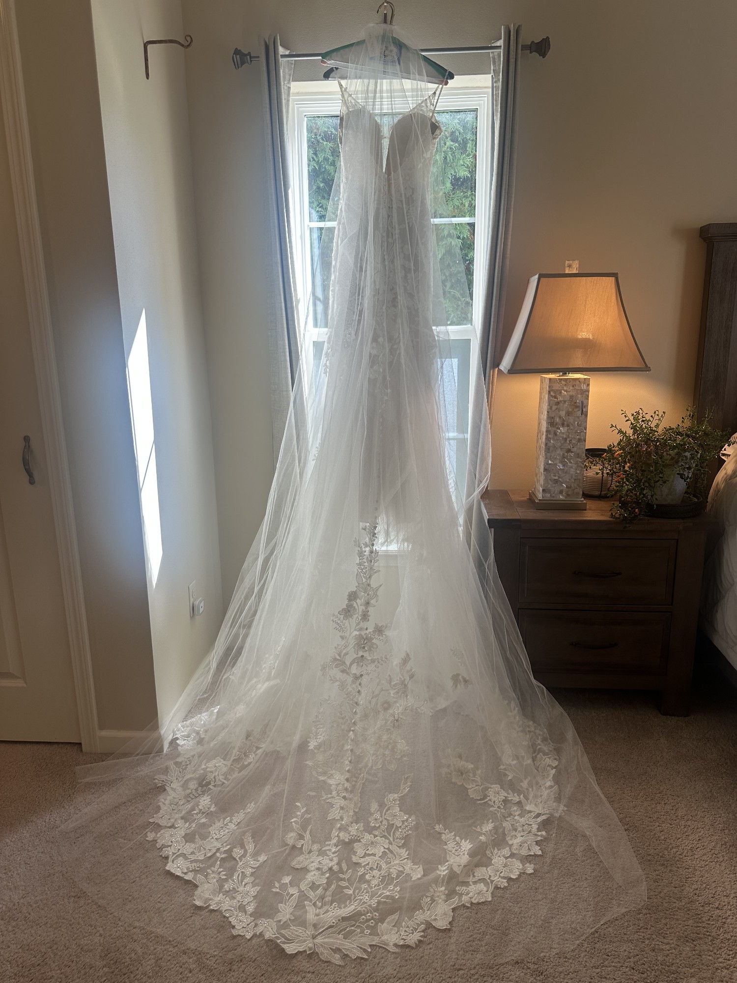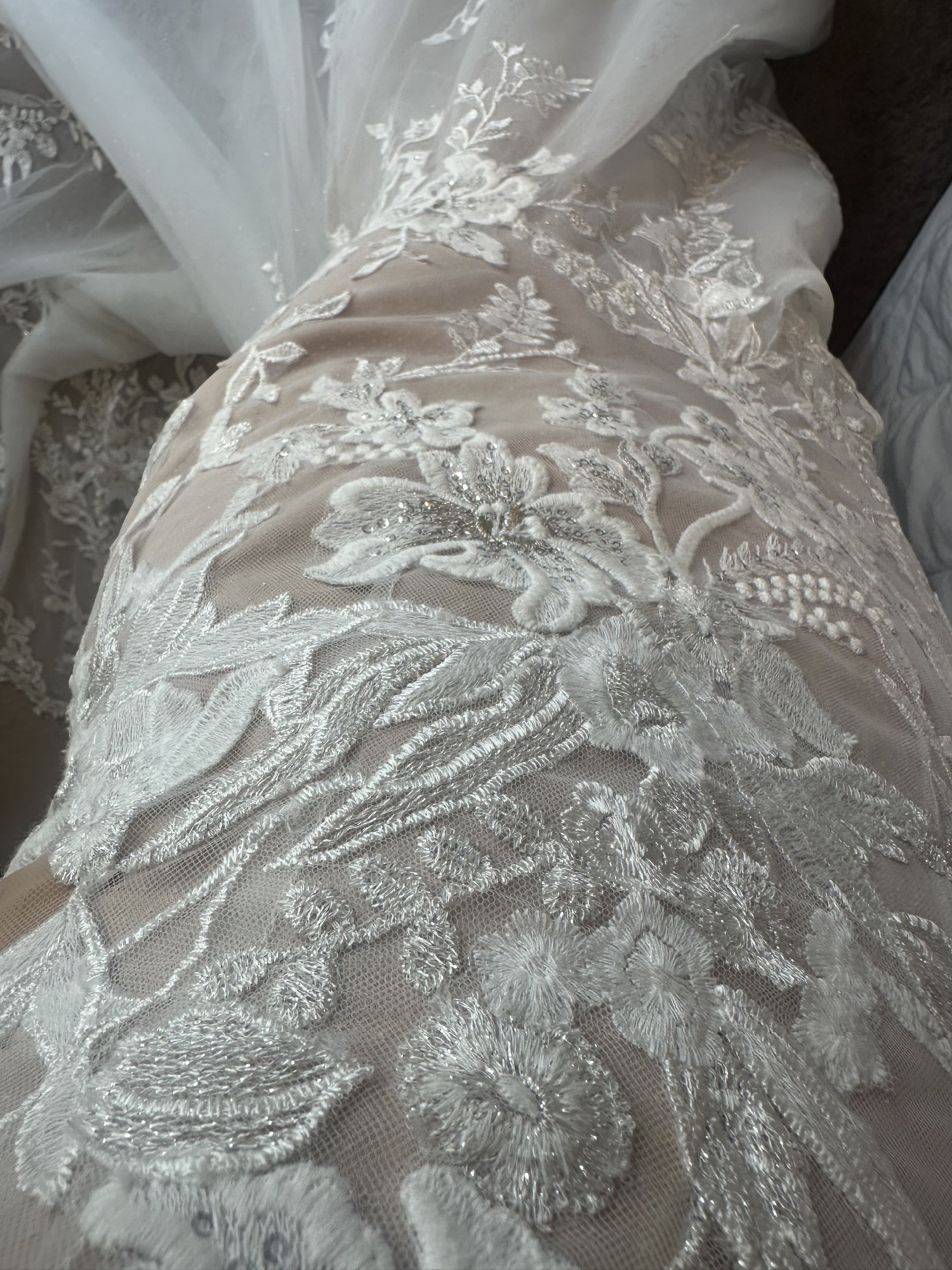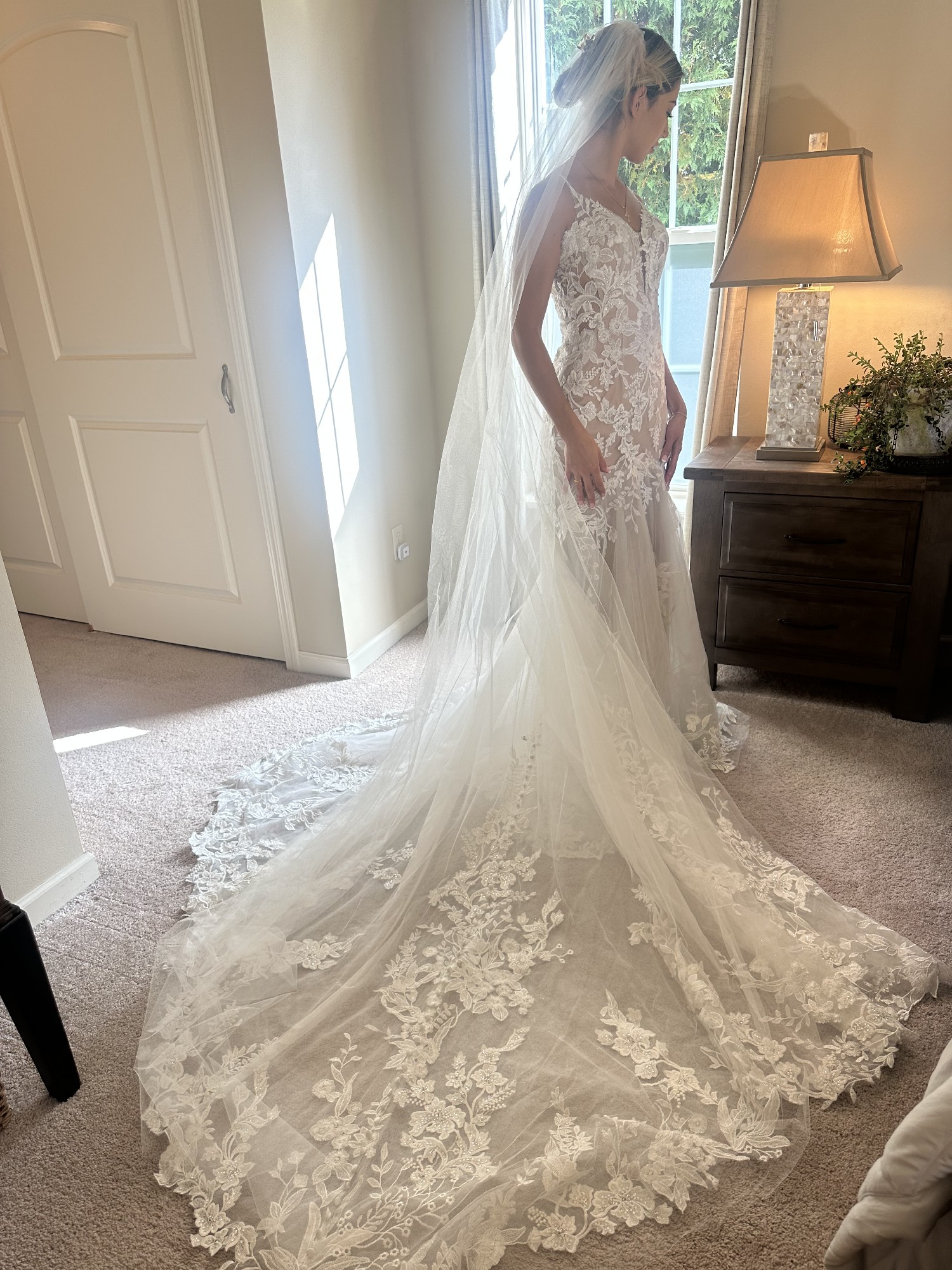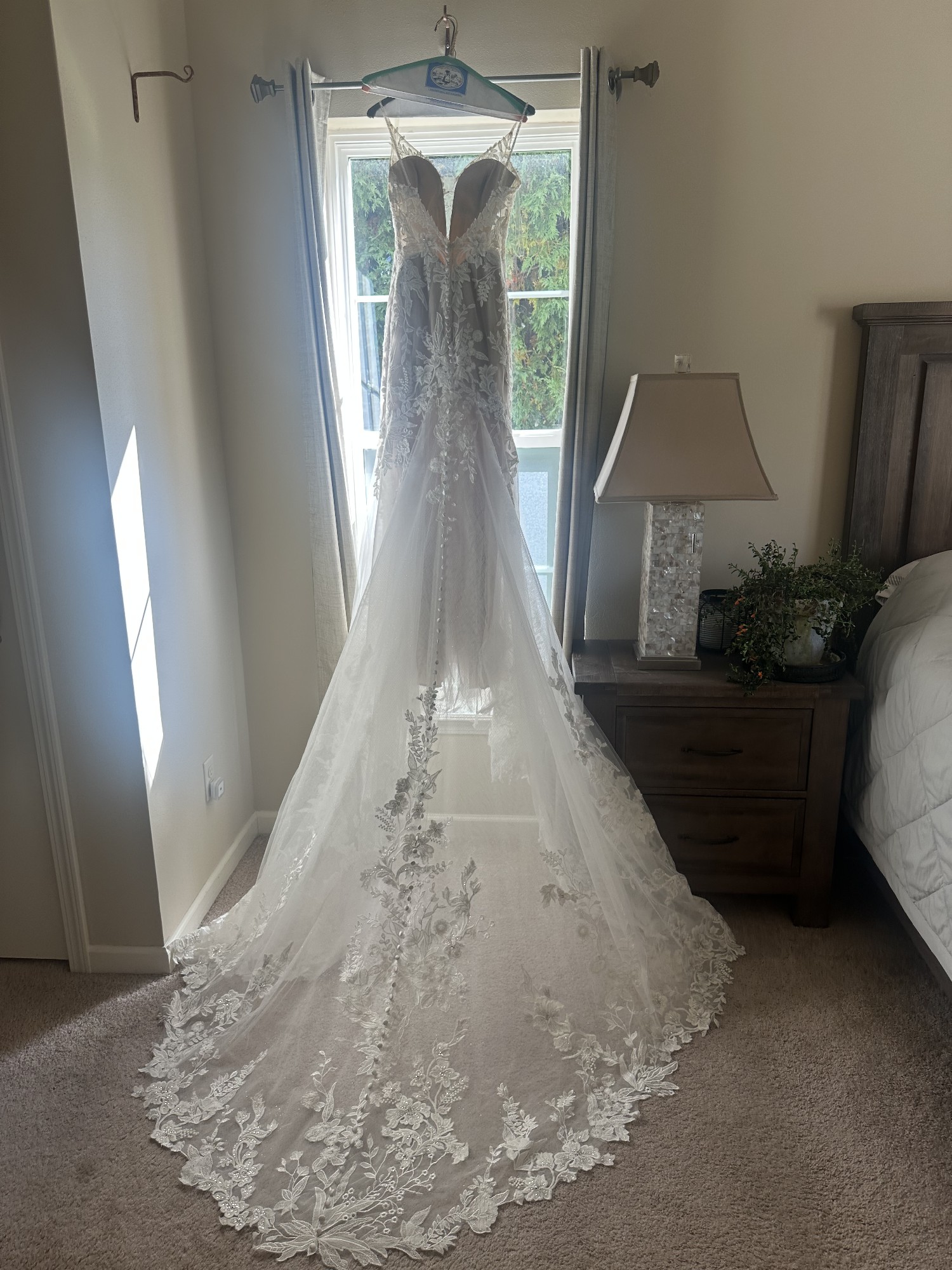 Never worn, other than during minimal alterations and try on photos! I decided to buy a completely different dress!