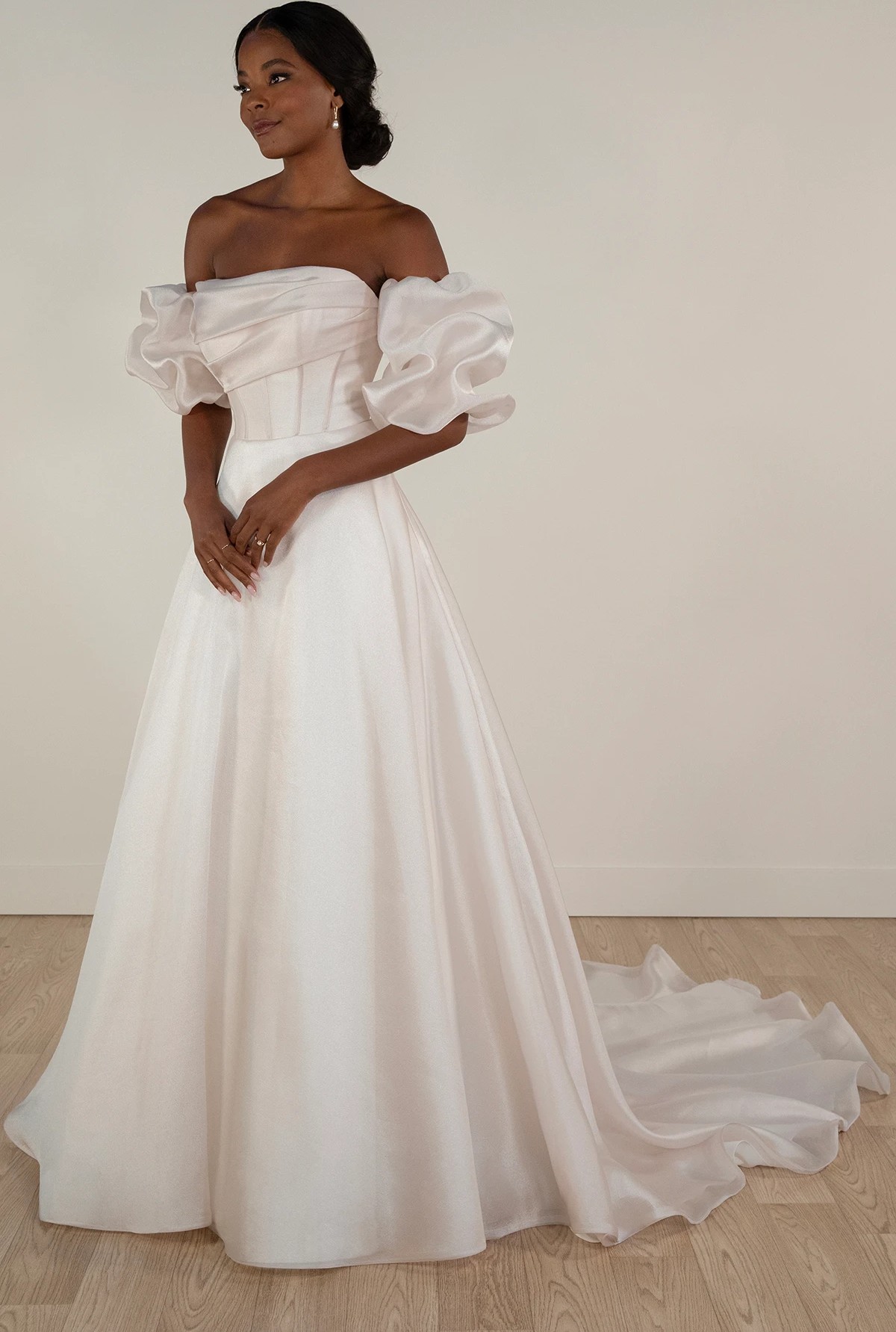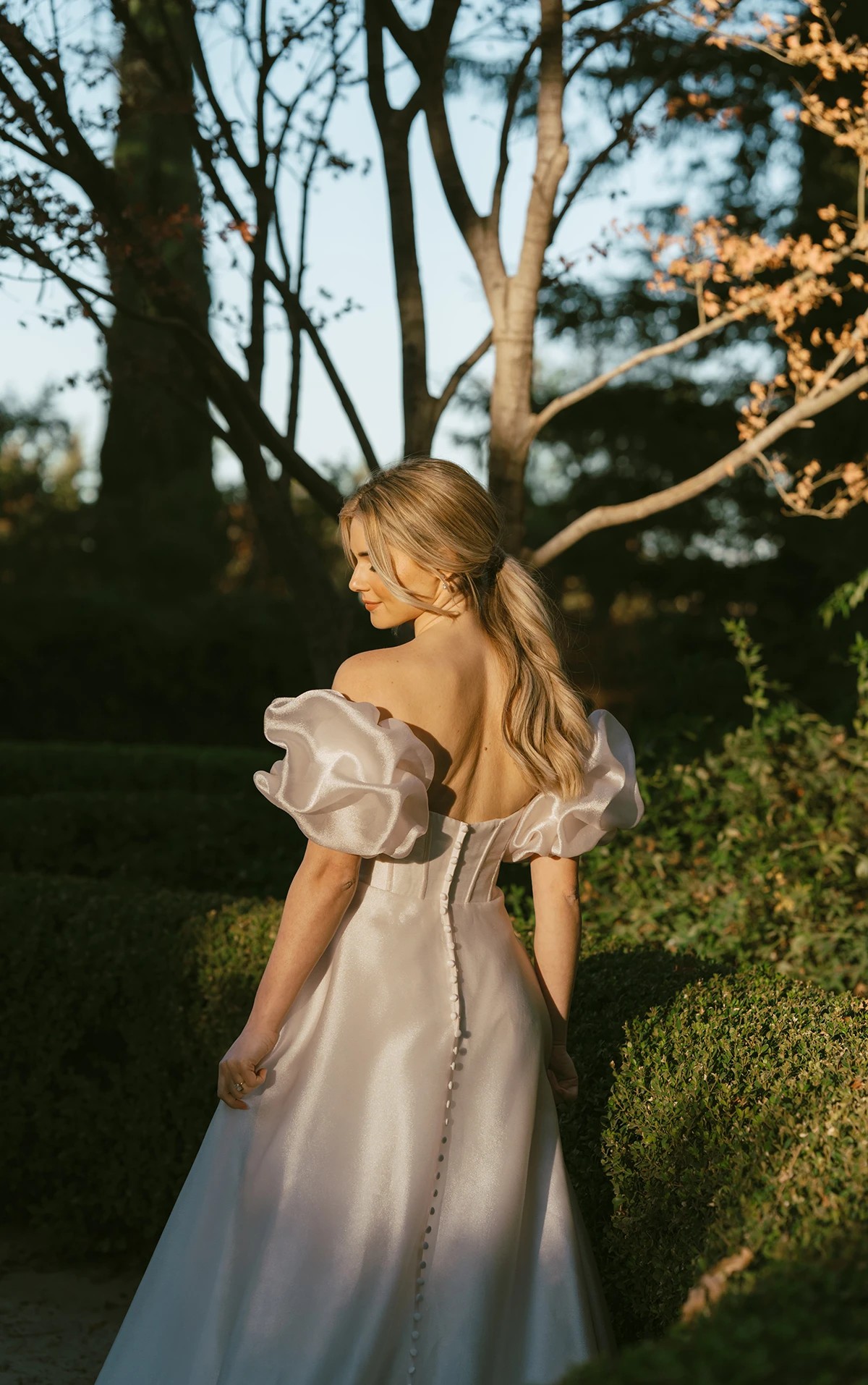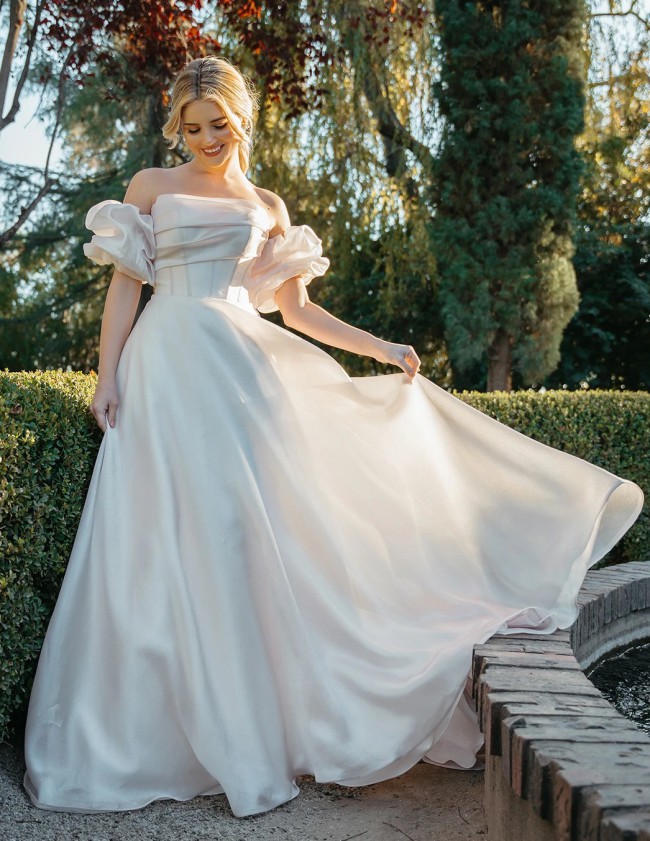 One of my favorite features of this dress is the low back, which adds a hint of allure without compromising on elegance. The strapless design enhances your natural beauty and highlights your shoulders beautifully. The floor-length skirt flows effortlessly, making it perfect for both outdoor and indoor ceremonies.