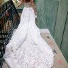 - A-line silhouette with a dramatic train