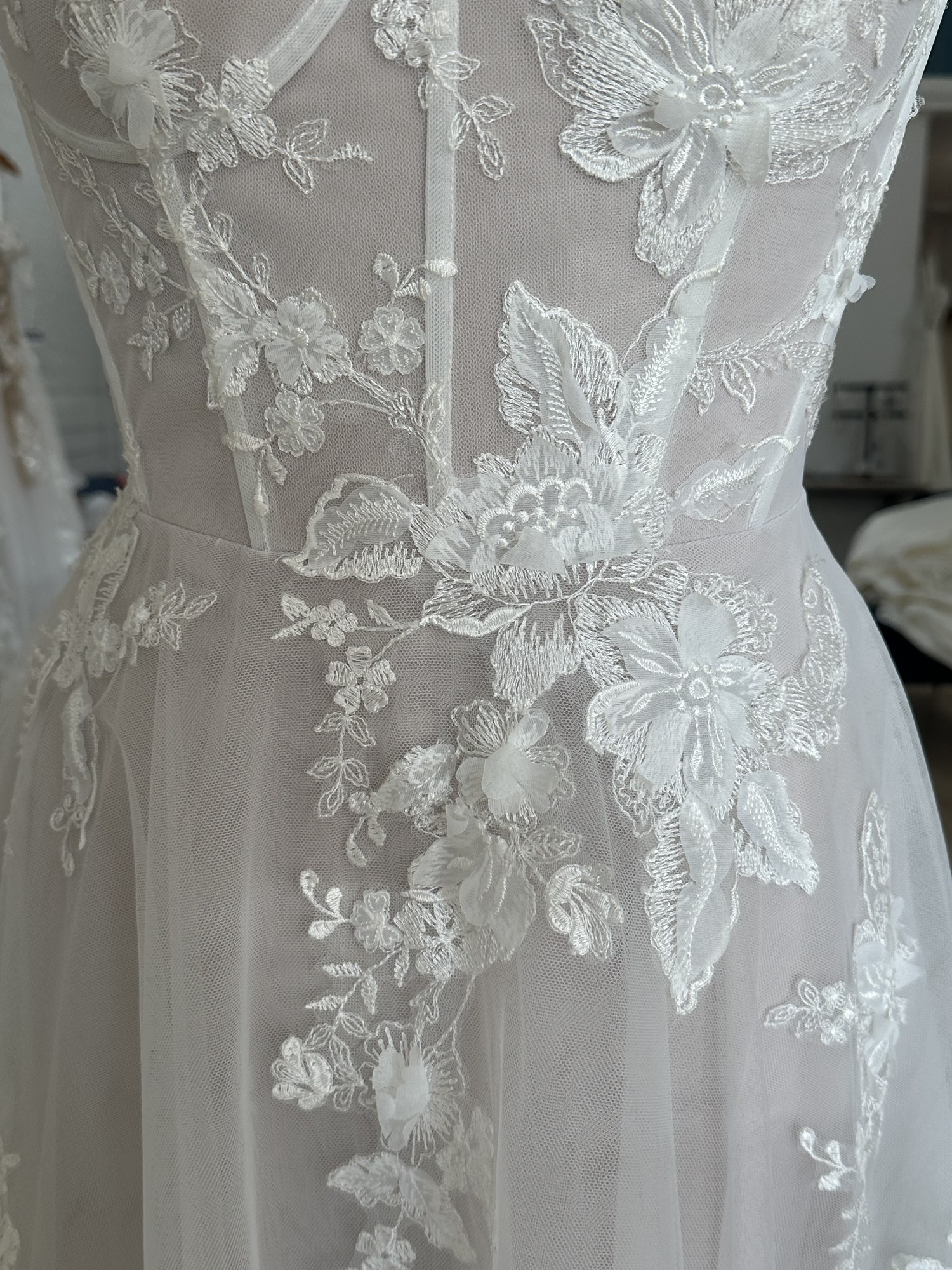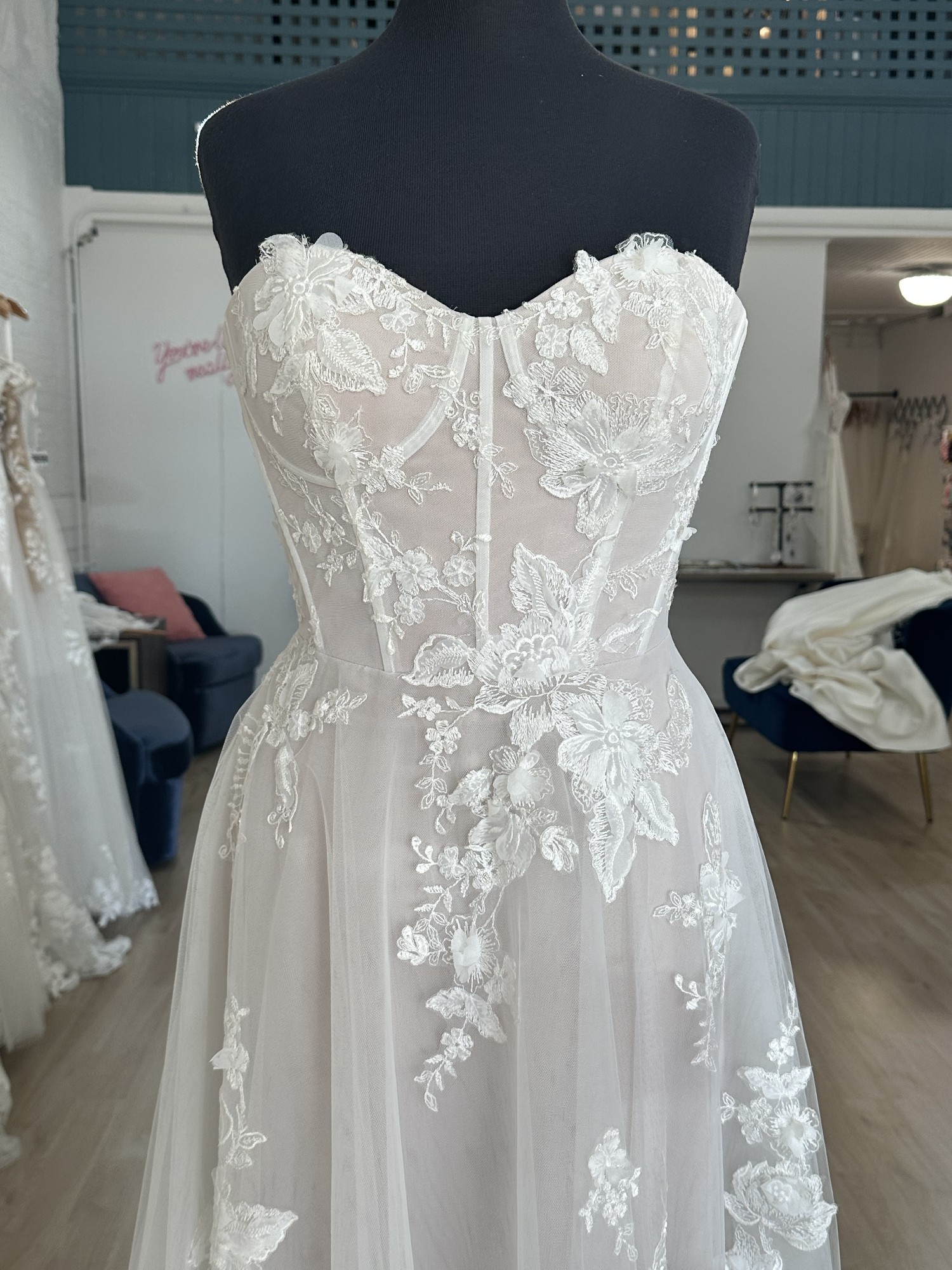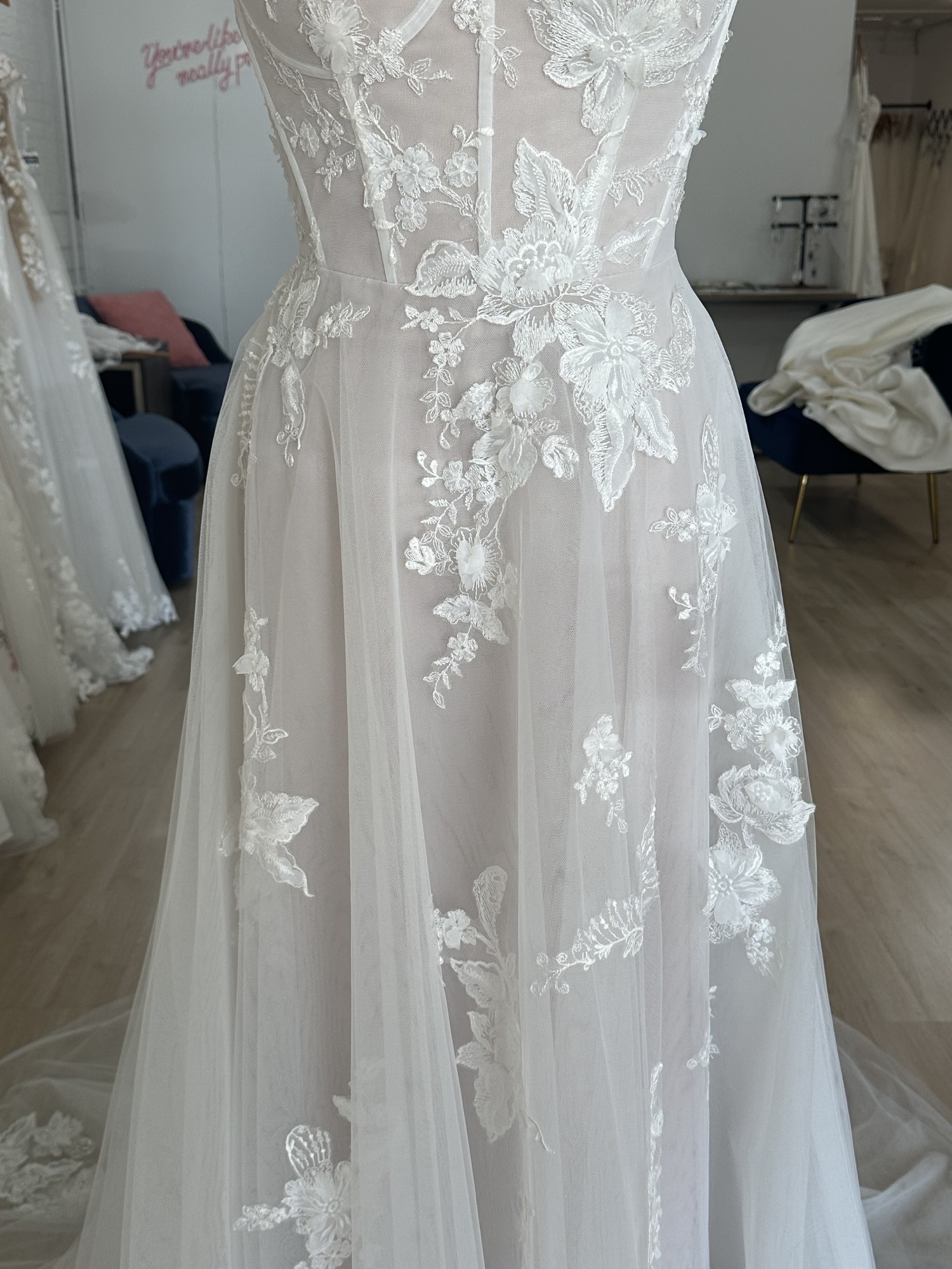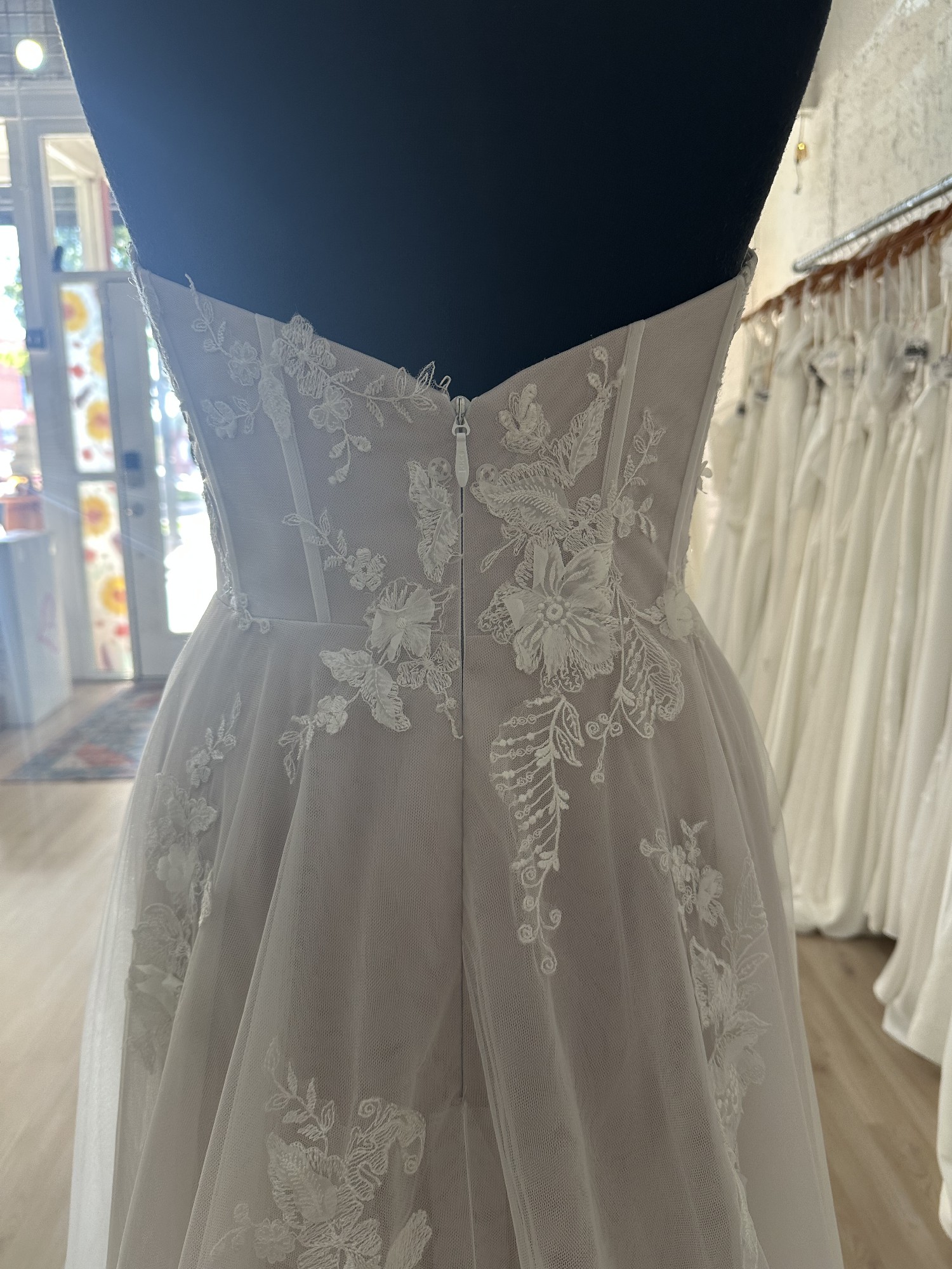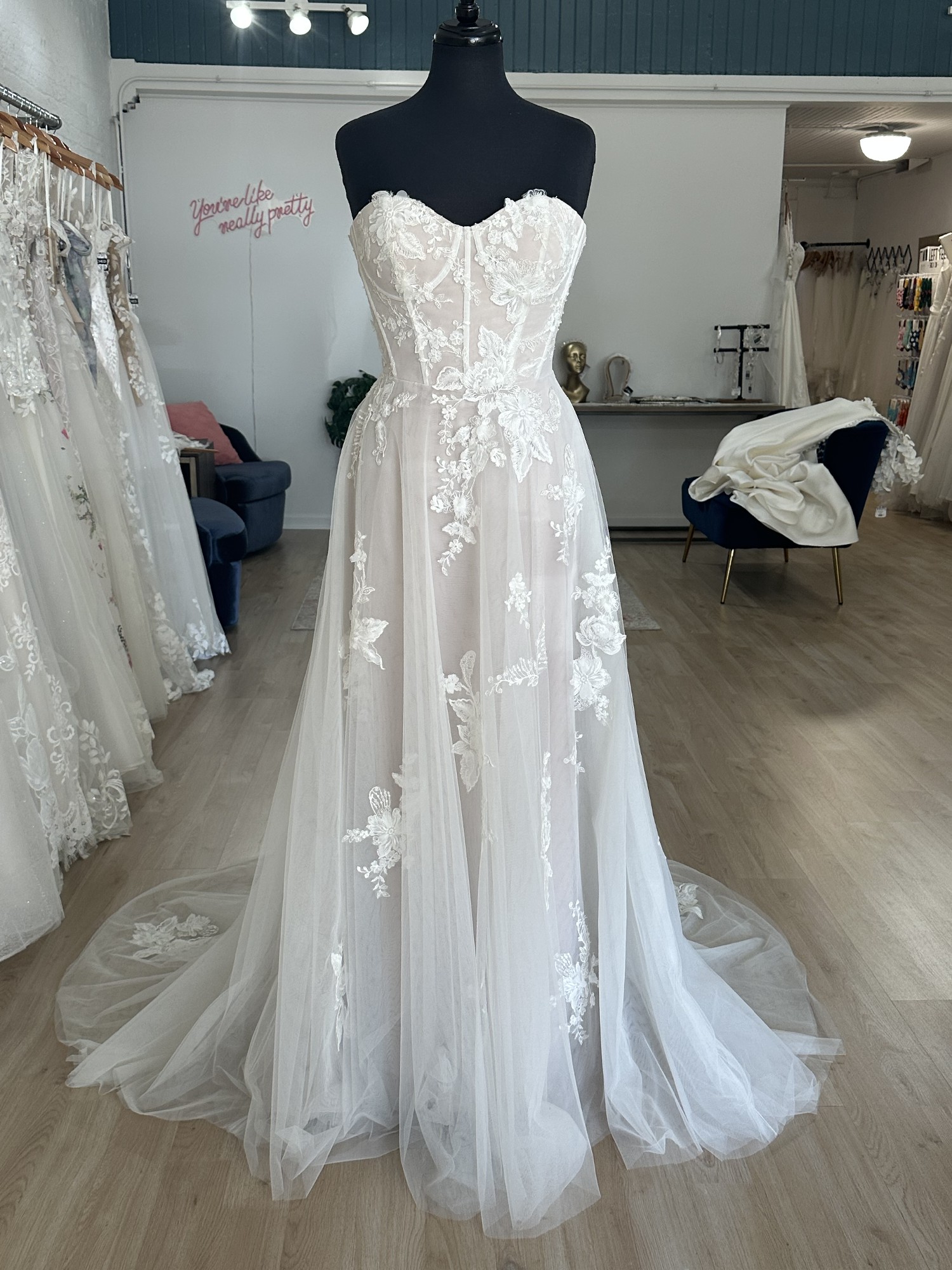 We are a small bridal shop, selling new and sample gowns that are unaltered to make room for new inventory in our store. We sell gowns online for up to 70% off retail. We keep our inventory in excellent condition with very little try on since we are a small boutique. Please feel free to reach out to us with any questions or need additional info on a gown.