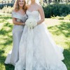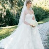 This A-line dress features a plunging sweetheart neckline, delicate illusion tulle, and intricate floral lace appliqué that flows seamlessly from the bodice into the soft, sweeping skirt.