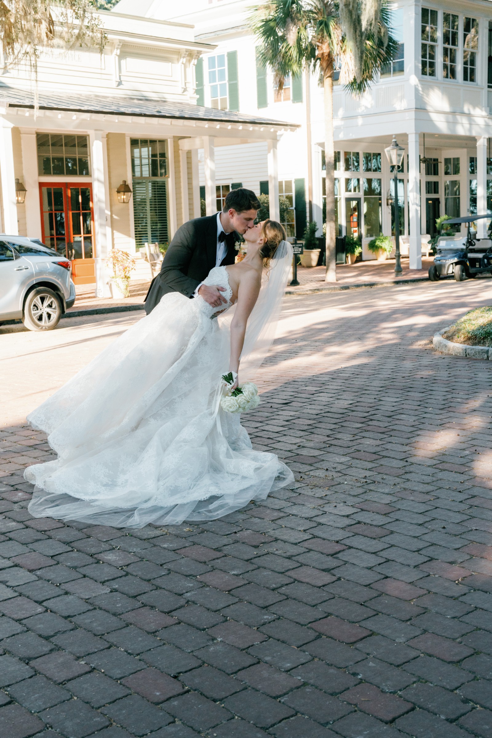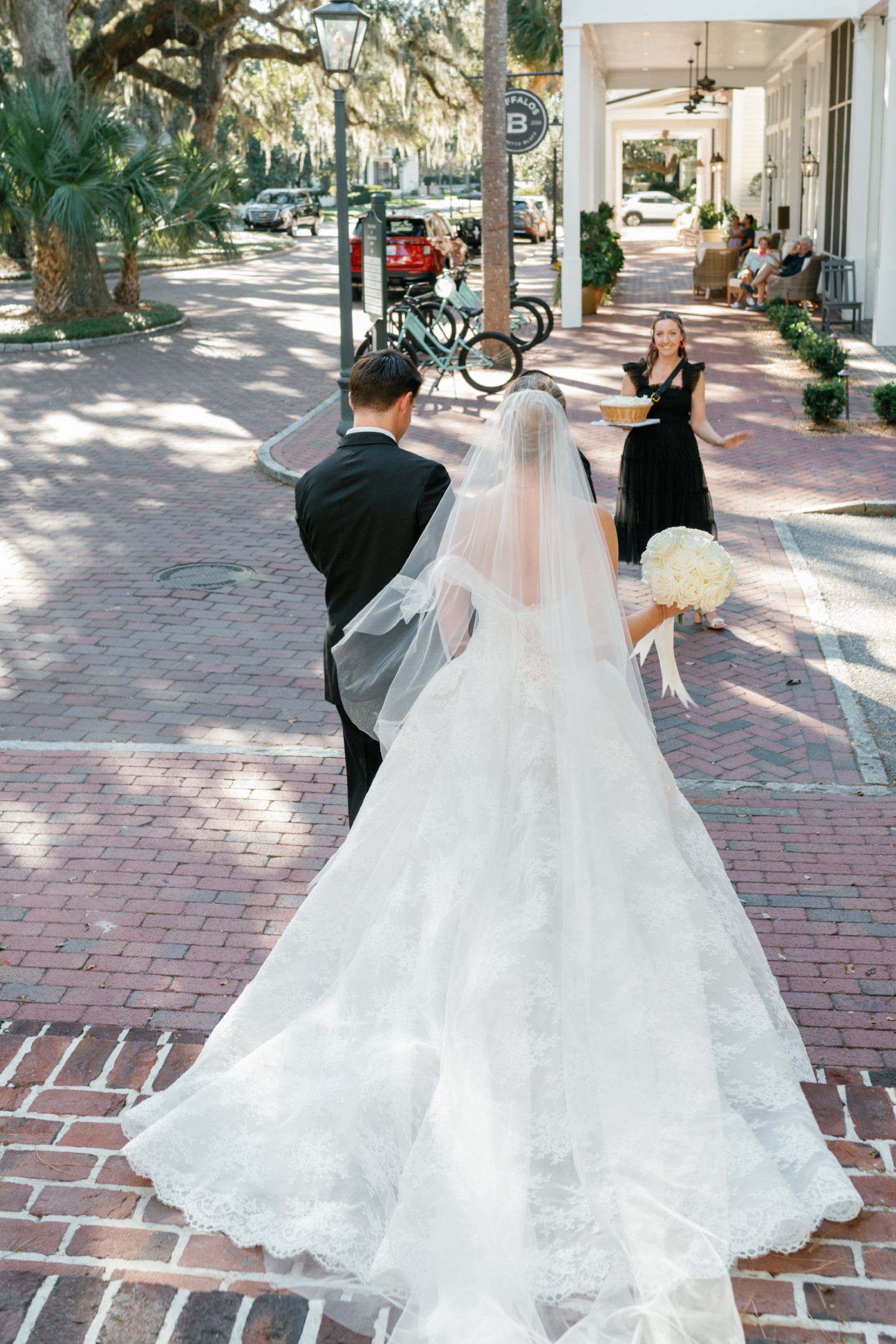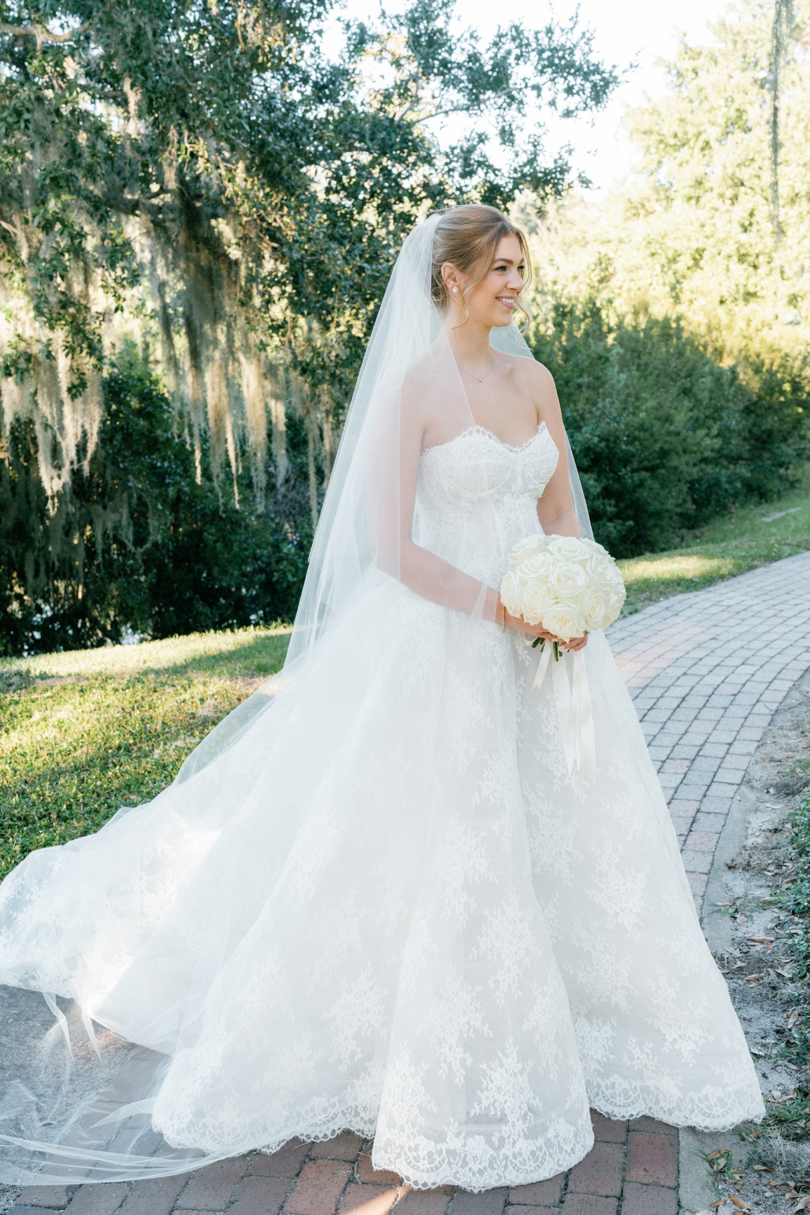 The structured bodice offers support while the airy skirt moves gracefully with every step, perfect for both indoor and outdoor ceremonies.