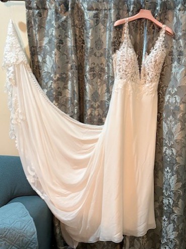 The cover photo is the dress I tried on at the shop but the one I am selling was brand new ordered and never tried on.