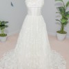 - Description: Off the Shoulder Ball Gown with Sequined Lace Appliqués