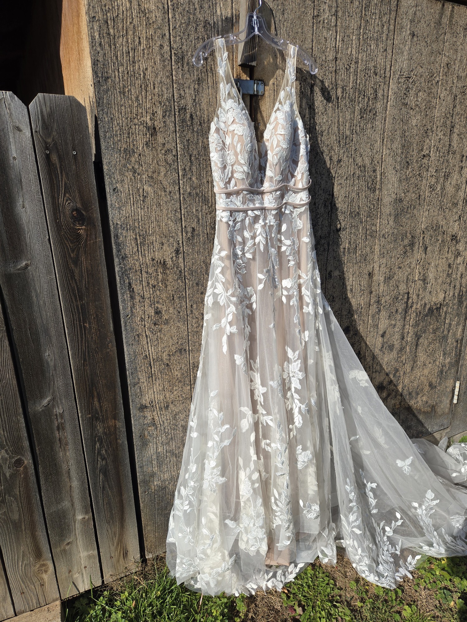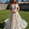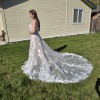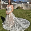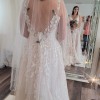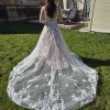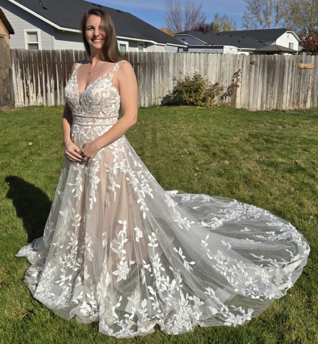 This Madison James MJ706 wedding dress is a stunning embodiment of elegance and romance, perfect for the bride who wants to make a memorable entrance. The A-line silhouette flatters a variety of body types, gracefully draping to the floor and allowing for effortless movement. The delicate V-neckline draws attention to the décolletage while providing a touch of modern sophistication, complemented beautifully by the elegantly designed straps.