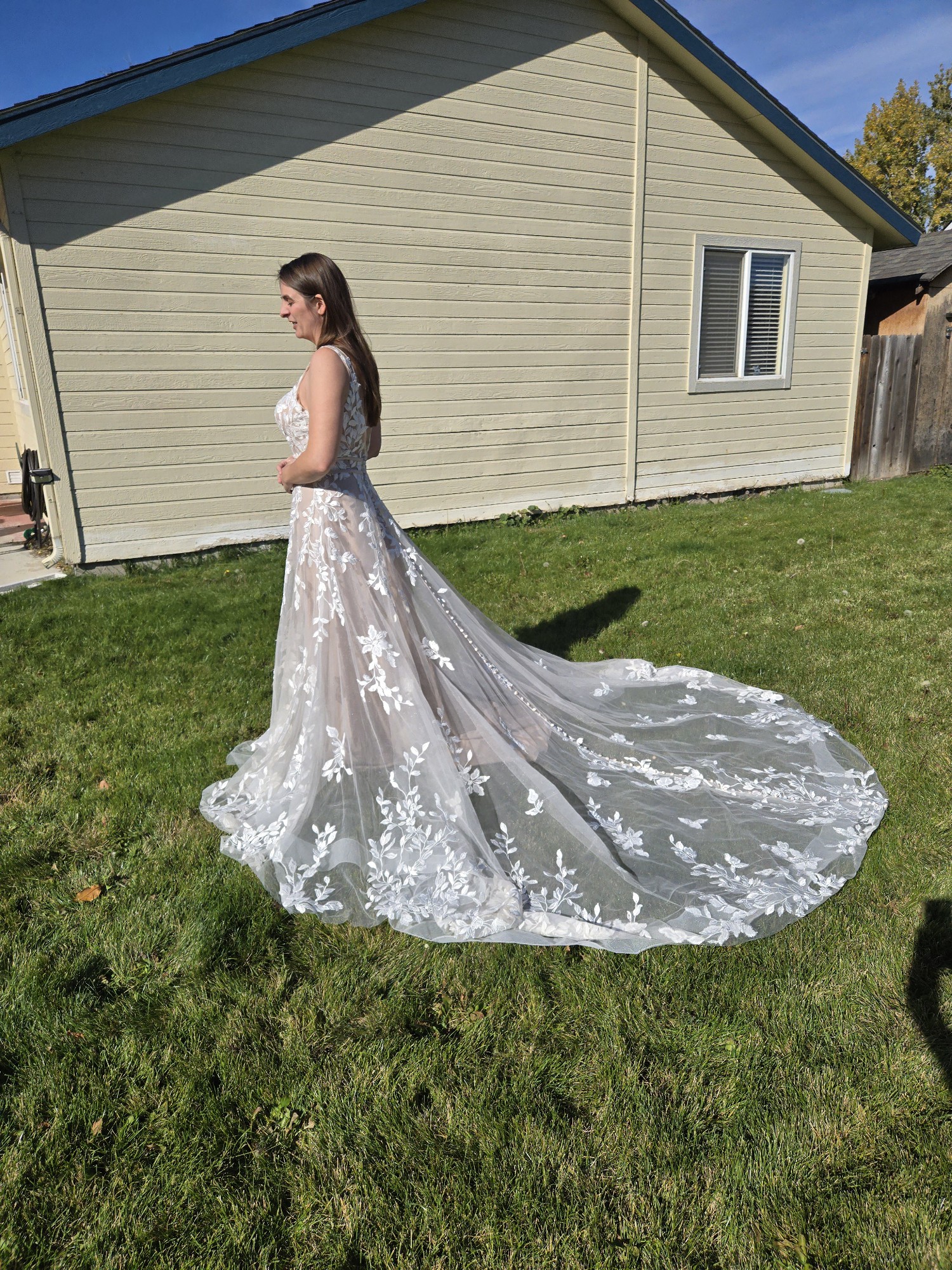 This floor-length gown seamlessly combines comfort with high-fashion flair, making it a perfect choice for any season. Whether exchanging vows outdoors under a serene sky or in a grand hall adorned with flowers, this dress promises to ensure romance, elegance, and beauty to any bride.