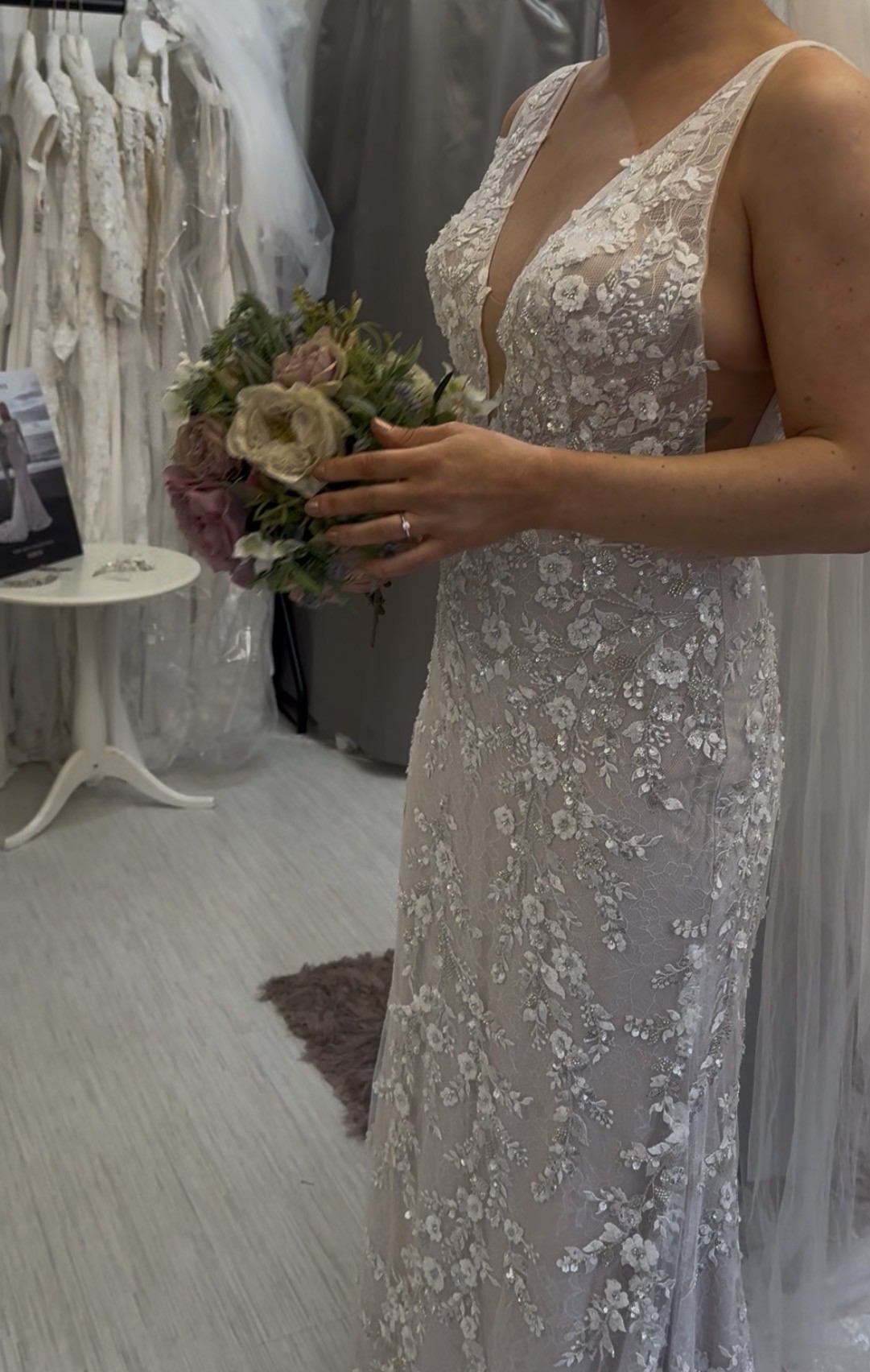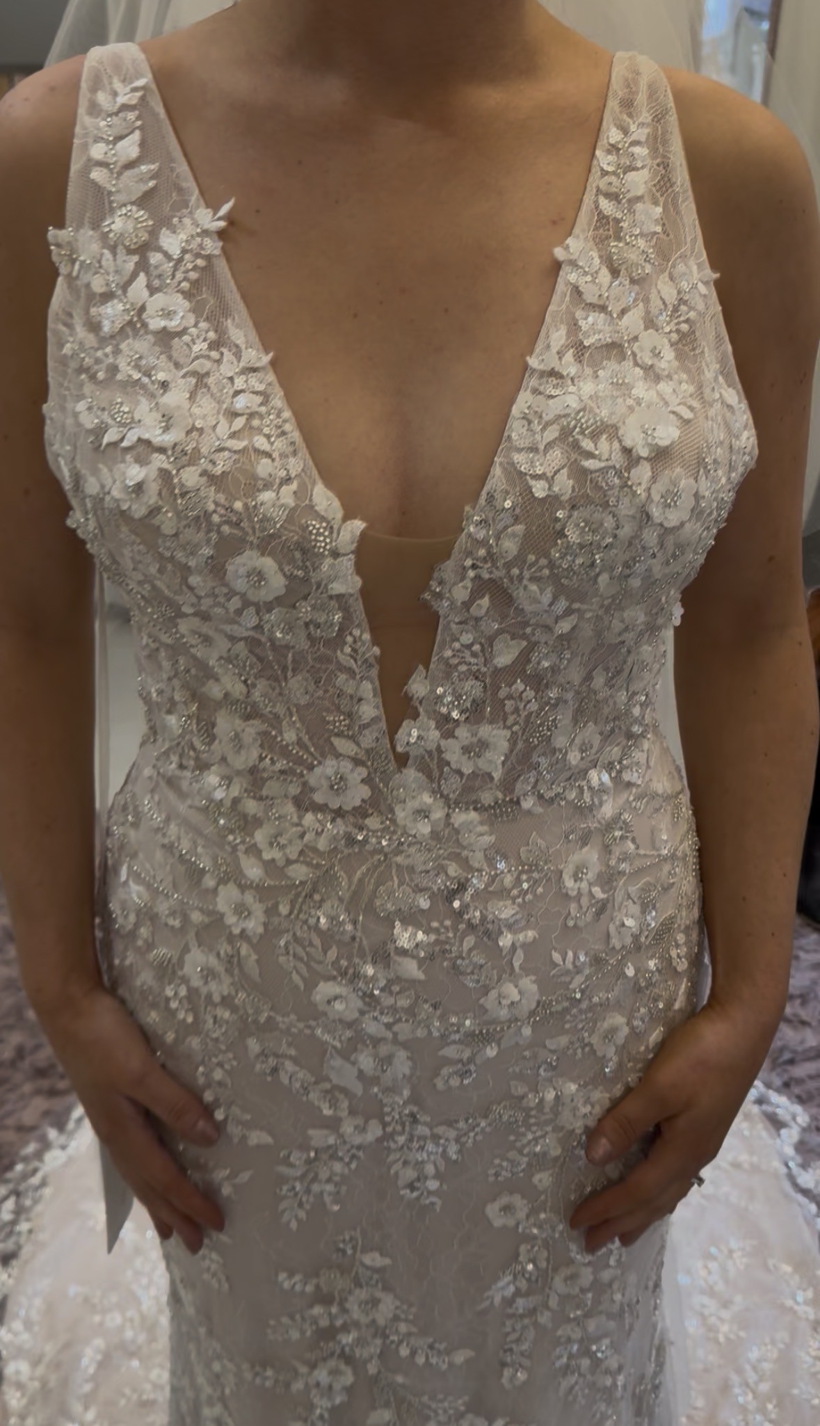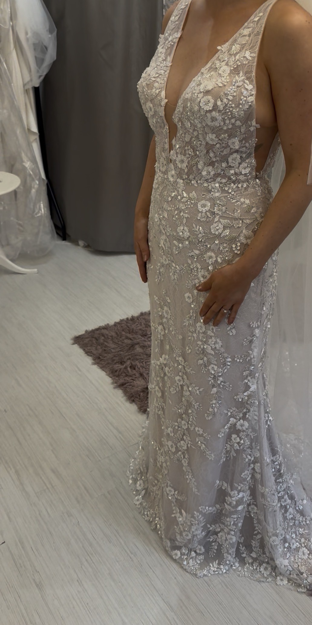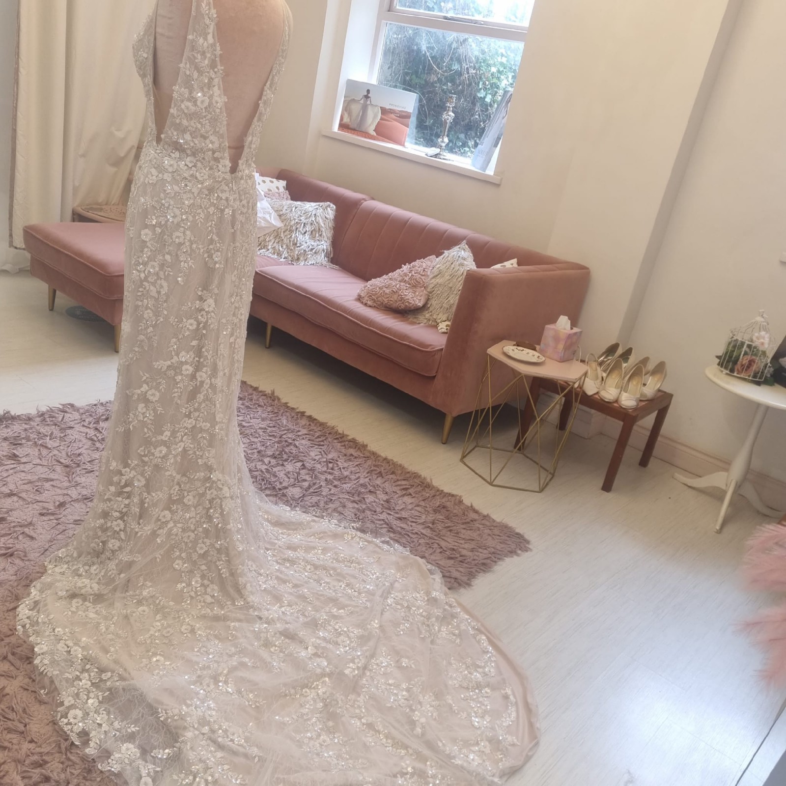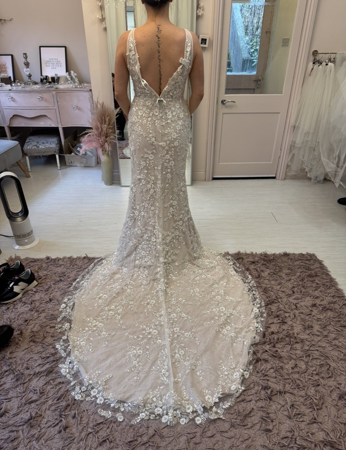 This gown is brand new, unworn, and unaltered, and comes complete with the matching Madi Lane veil (purchased separately for £350) photo of veil attached. The dress itself was £1,899, making this an exceptional opportunity to own both pieces in pristine condition.