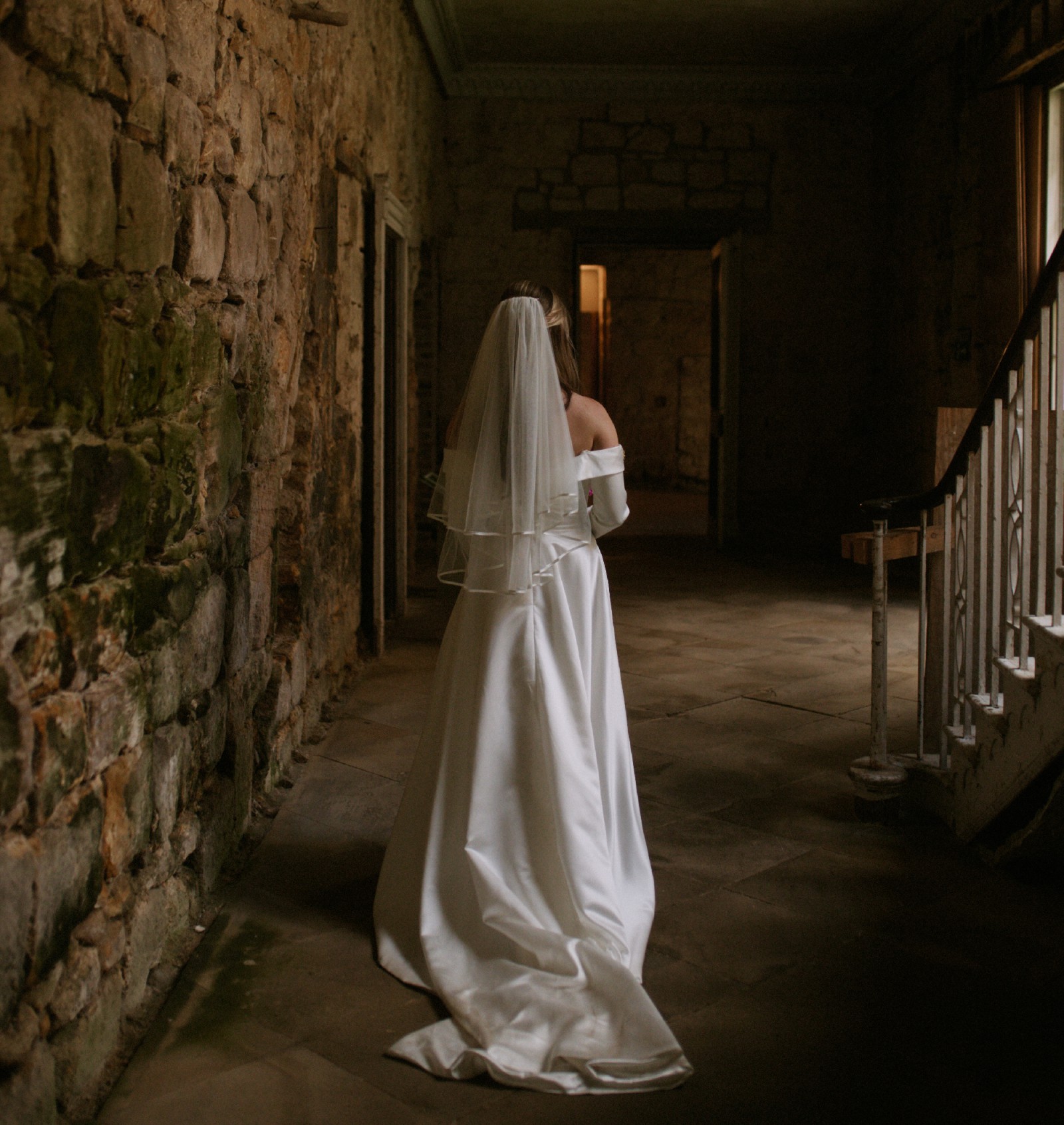 - Detachable sleeves in matching crepe - attached with hook and eye style buttons (photos to follow)