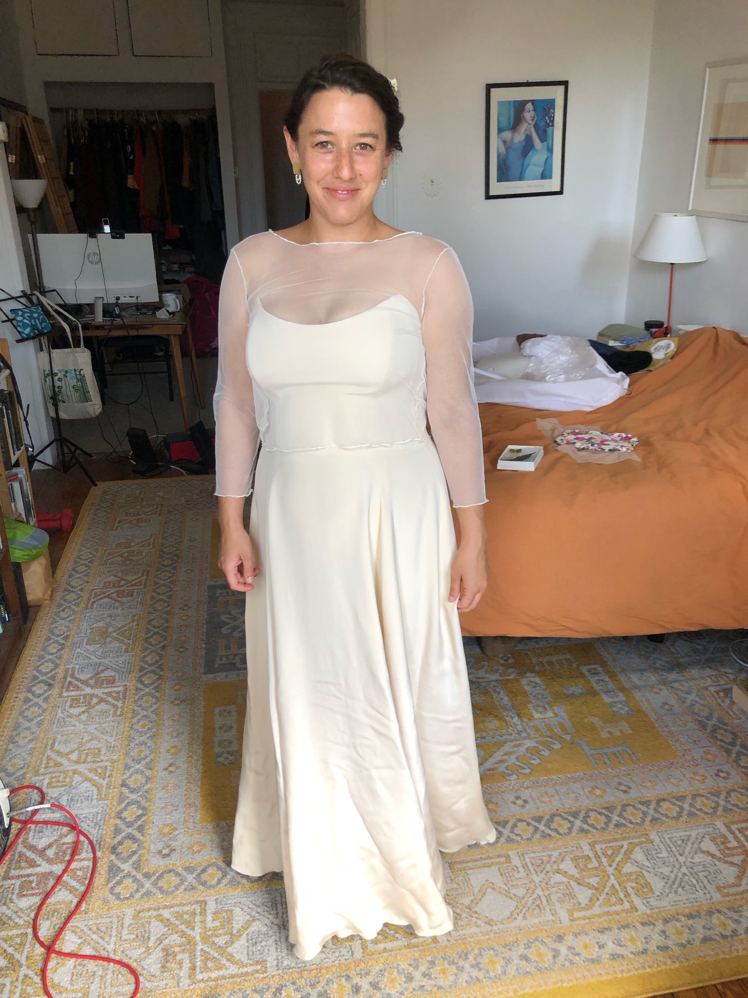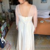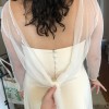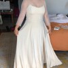 I got married in October so I added the sheer, reversible, wrap topper which I will include, but it's completely separate. I am a 36D and I did not have to wear a bra with the dress, but it is strapless bra friendly. The only minor flaw is that the hook and eye closure at the top of the zipper broke, but that is an extremely easy fix. I loved my dress, I hope you will too!