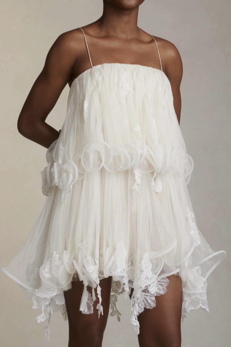 Danielle Frankel's dresses are a masterclass in modern bridalwear, and they're made with such attention to detail that they'll be talked about for a lifetime. This 'Wendell' style is cut from layers of tulle and lace that will create beautiful movement in your photographs.