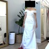 The floor-length gown flows beautifully, and the mid-back design adds just the right touch of charm.