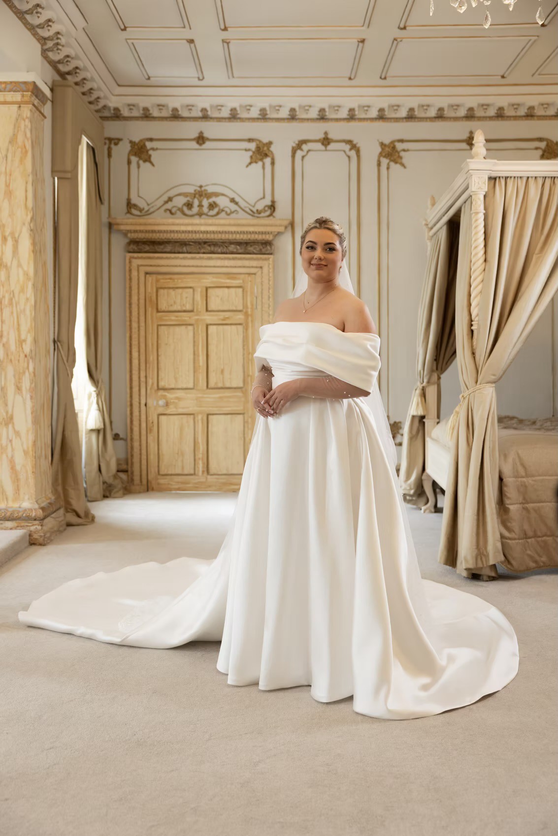 This Eridana wedding dress by Milla Nova truly made my special day unforgettable. The elegant A-line silhouette flatters every figure and offers a dreamy, ethereal vibe that I absolutely adored. The off-the-shoulder neckline adds a touch of romantic charm, perfectly complemented by the exquisite bolero that I wore for the ceremony.