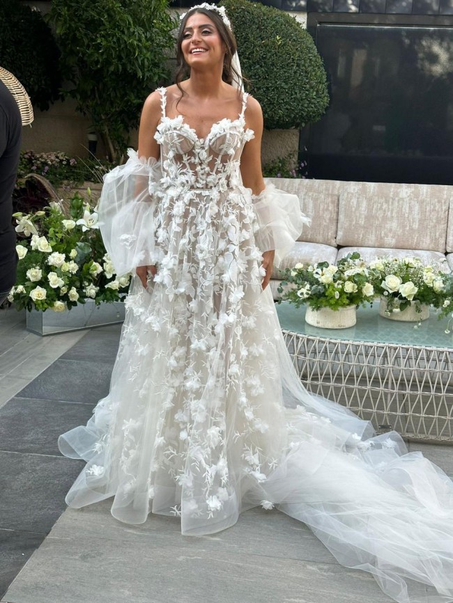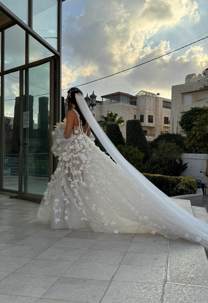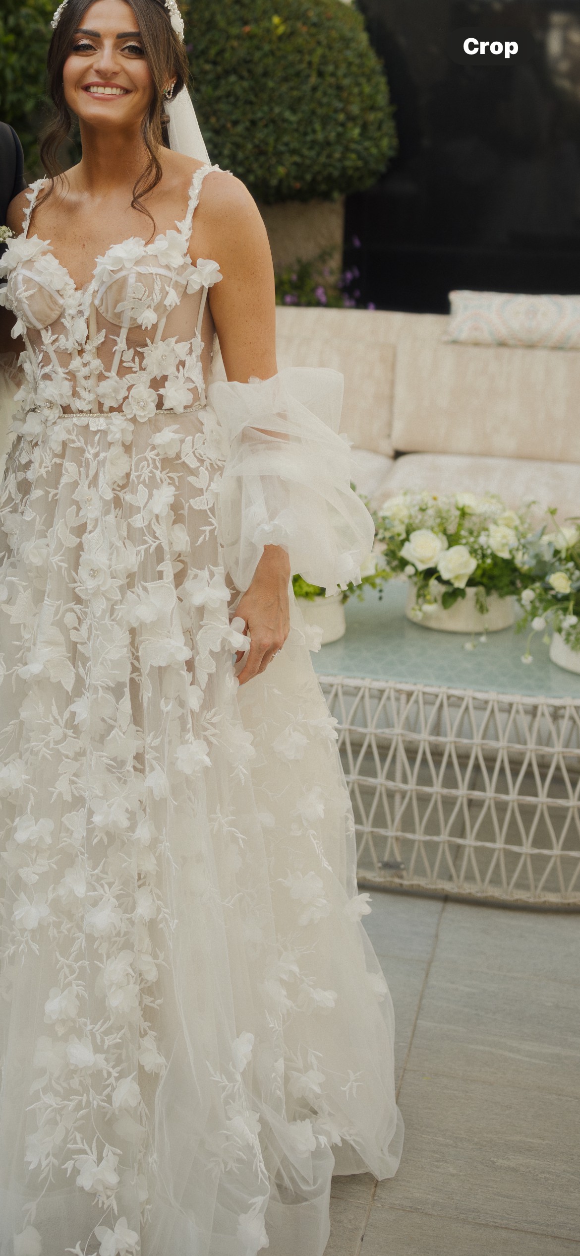 What truly set this dress apart were the stunning 3D flowers and intricate beading that catch the light in the most enchanting way. I especially loved the detachable puff sleeves, which offered versatility for both the ceremony and reception—transforming my look with just a simple change. This dress is not just a gown; it’s a treasure filled with memories. I hope another bride gets to experience the joy and beauty it brought me on my special day.