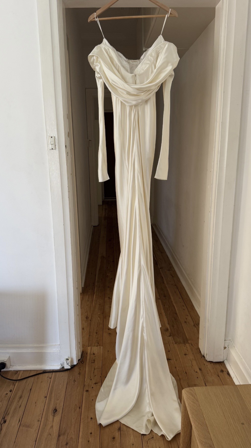 The iconic Danielle Frankel Noa Gown, (RRP SGD9,500) purchased brand new. This dress is a US size 4. I am 173cm tall without heels, and approx. 179cm tall with heels. This dress has not had any alterations and it exactly as it arrived from the designer.