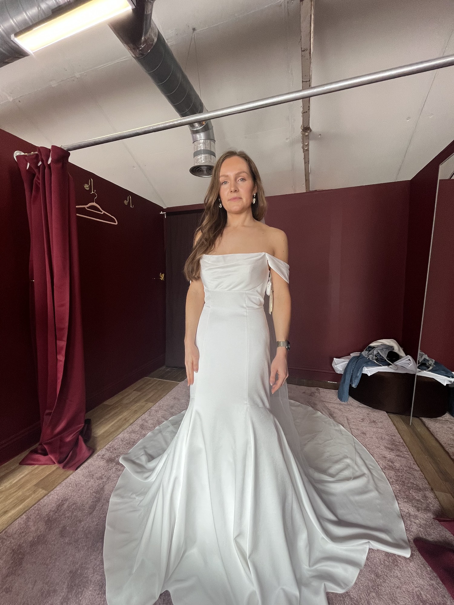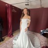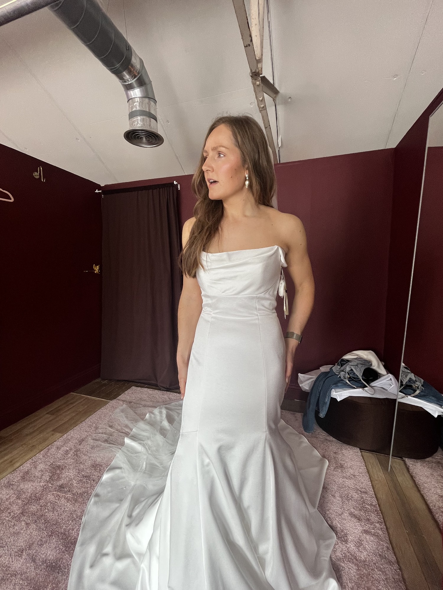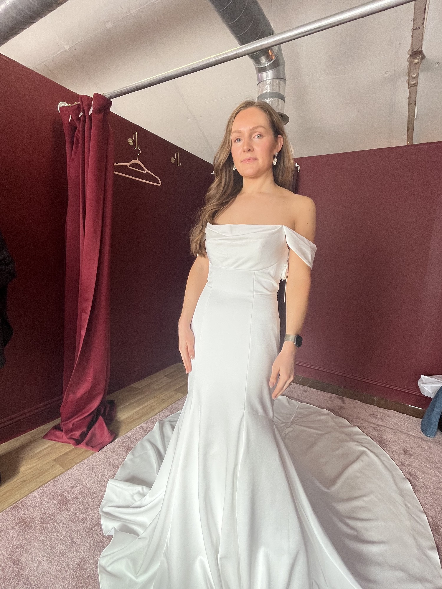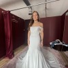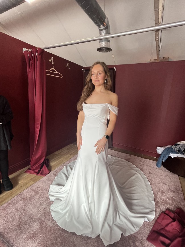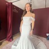 Jenny Yoo Meredith with Sleeves. Draped sleeves can be made detachable for 2 looks in 1. Clean and Classic fit and flare, crafted from a gorgeous soft mikado fabric. Draped, cowl neckline. Internal corsetry for secure support around the bust and waist.