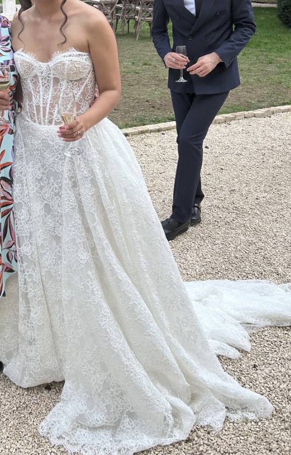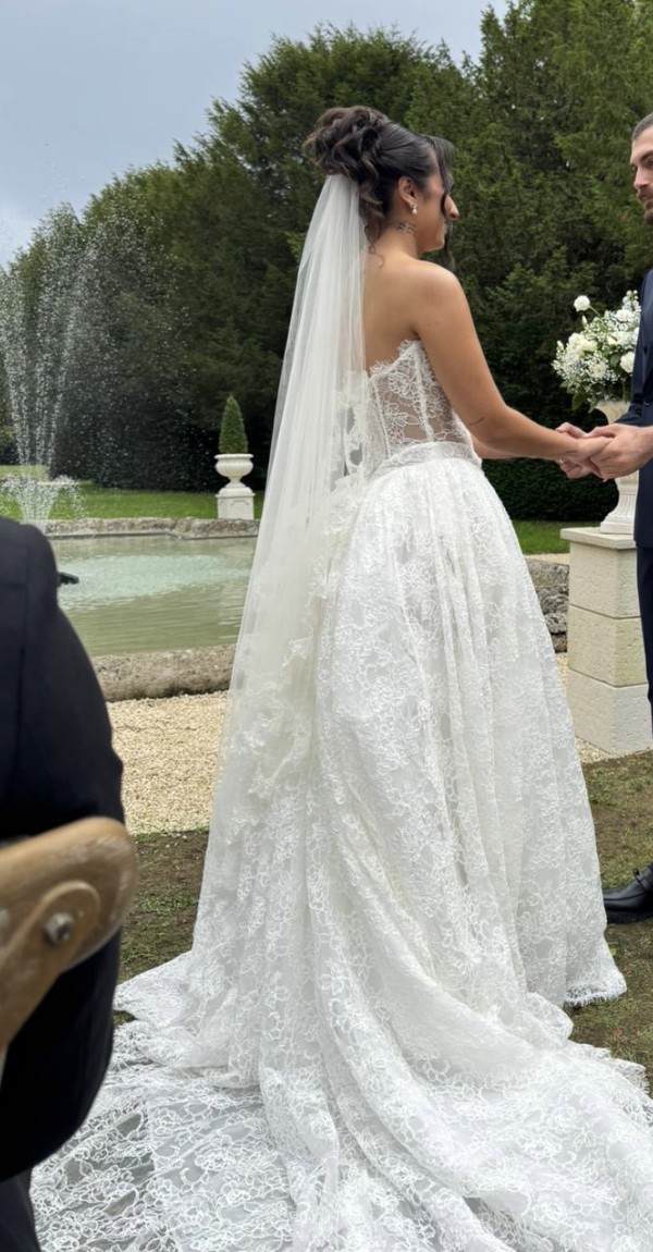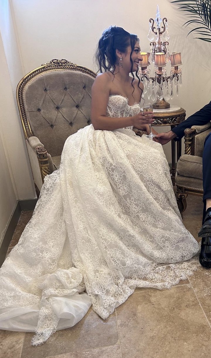 I wore this dress for my dream wedding, and it truly made me feel like a princess. It is in excellent condition and ready for its next special day. If you’re looking for a dress that combines beauty and elegance, this is the one for you. I hope it brings the same joy and magic to you as it did to me.