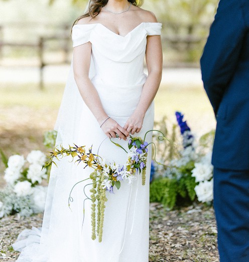 I also had multiple bustles put in place (and I have a video I can share on how to bustle it) so that I could continue dancing all night long - it becomes very 'grecian' when pulled up. I wore it this way for the majority of the evening.