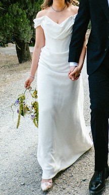 This stunning made to order Vivienne Westwood Cocotte dress was literally the most beauitful thing I've ever worn and I can't wait for another bride to create her own unforgettable memories in it. It's in perfect condition, dry cleaned by a couture dry cleaner in London, and the fabric is a semi-matte silk cady which is custom and not what you typically get. It's more forgiving on lumps and bumps under the dress.