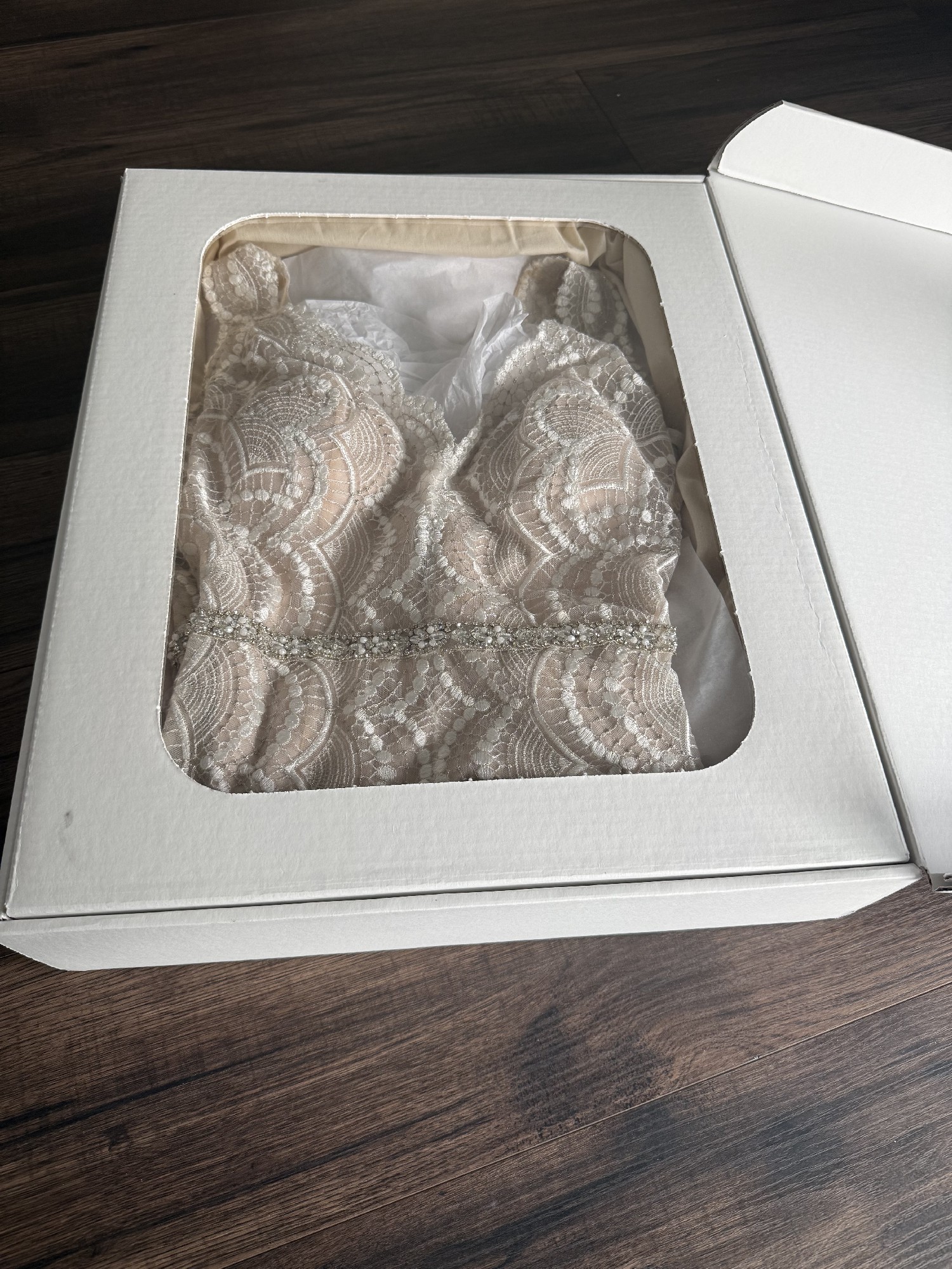 Dress was professionally cleaned and stored. Will ship in the professionally stored box.