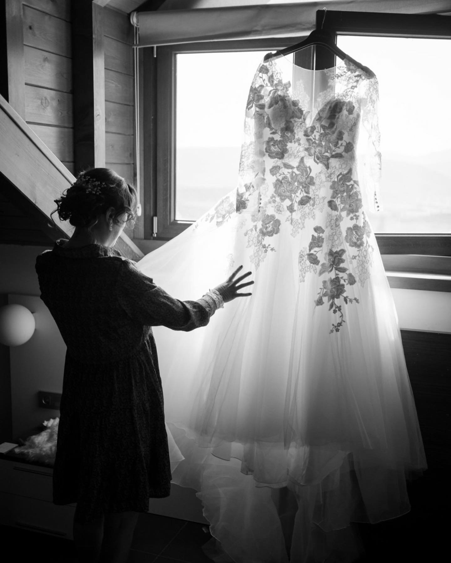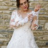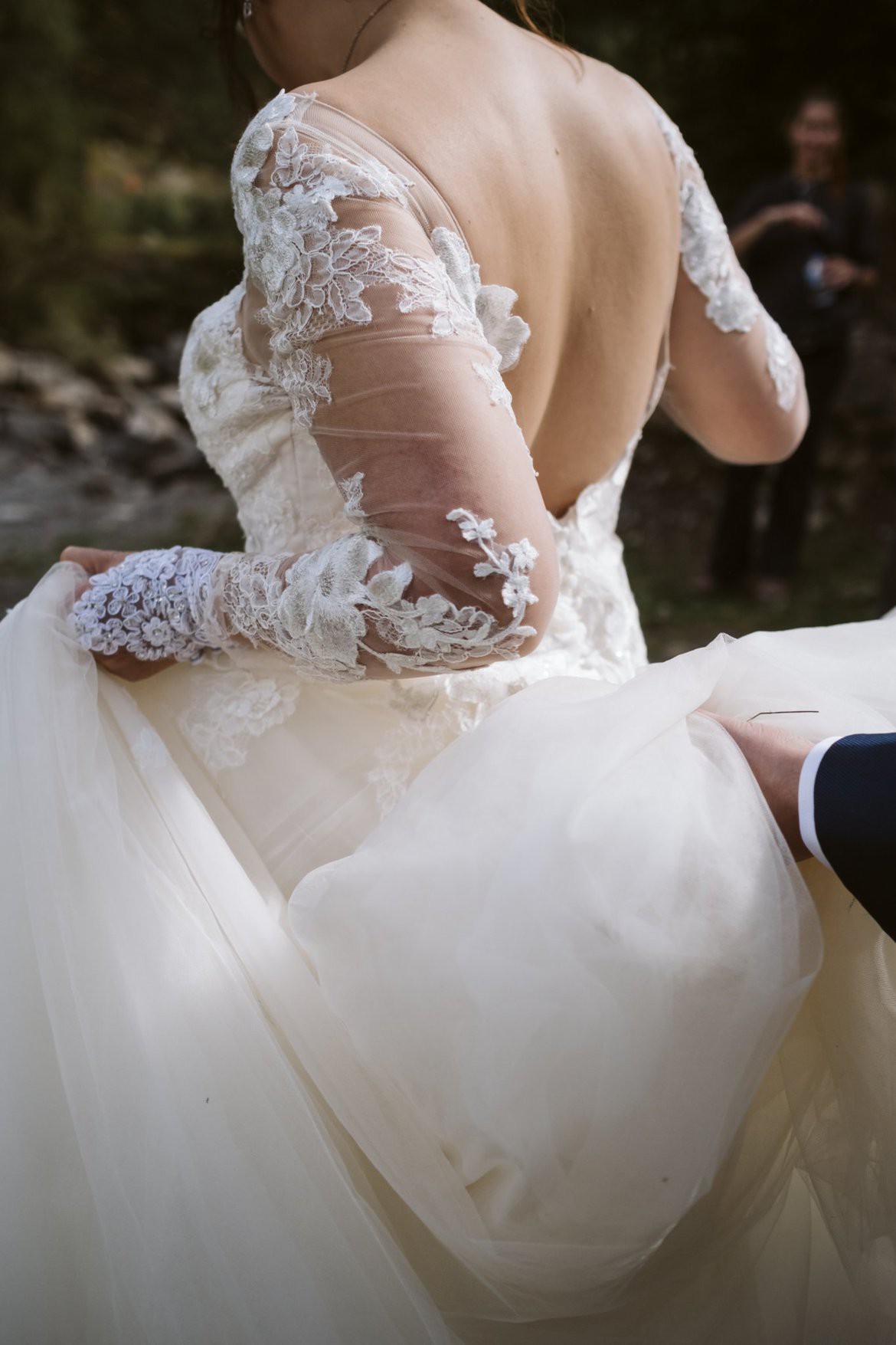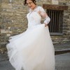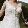 The sheer neckline gracefully highlights the décolletage, while the long sleeves add a touch of sophistication, making it perfect for both timeless and modern weddings. The backless detail is a showstopper, revealing just the right amount of allure while maintaining an air of class.