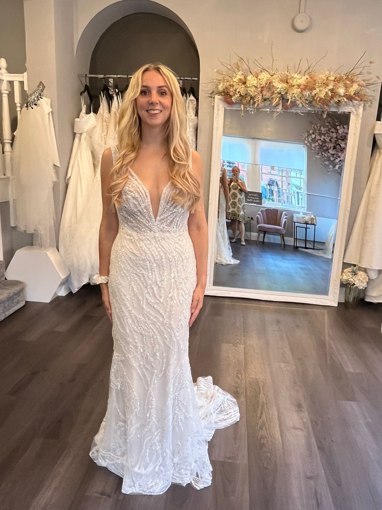 This Enzoani Silvia wedding dress was my dream gown and made my special day even more magical. The moment I slipped it on, I felt like a true bride. The mermaid silhouette hugs the curves beautifully, creating an elegant profile that still allows for ease of movement, perfect for dancing the night away.