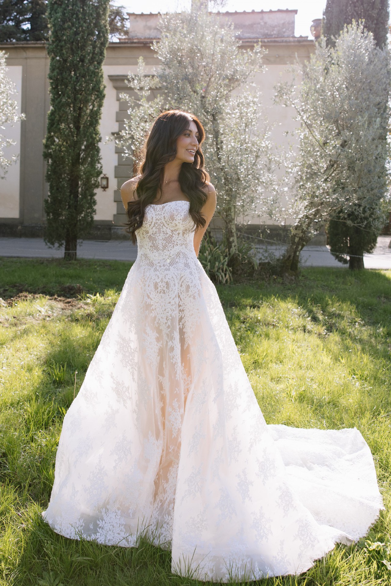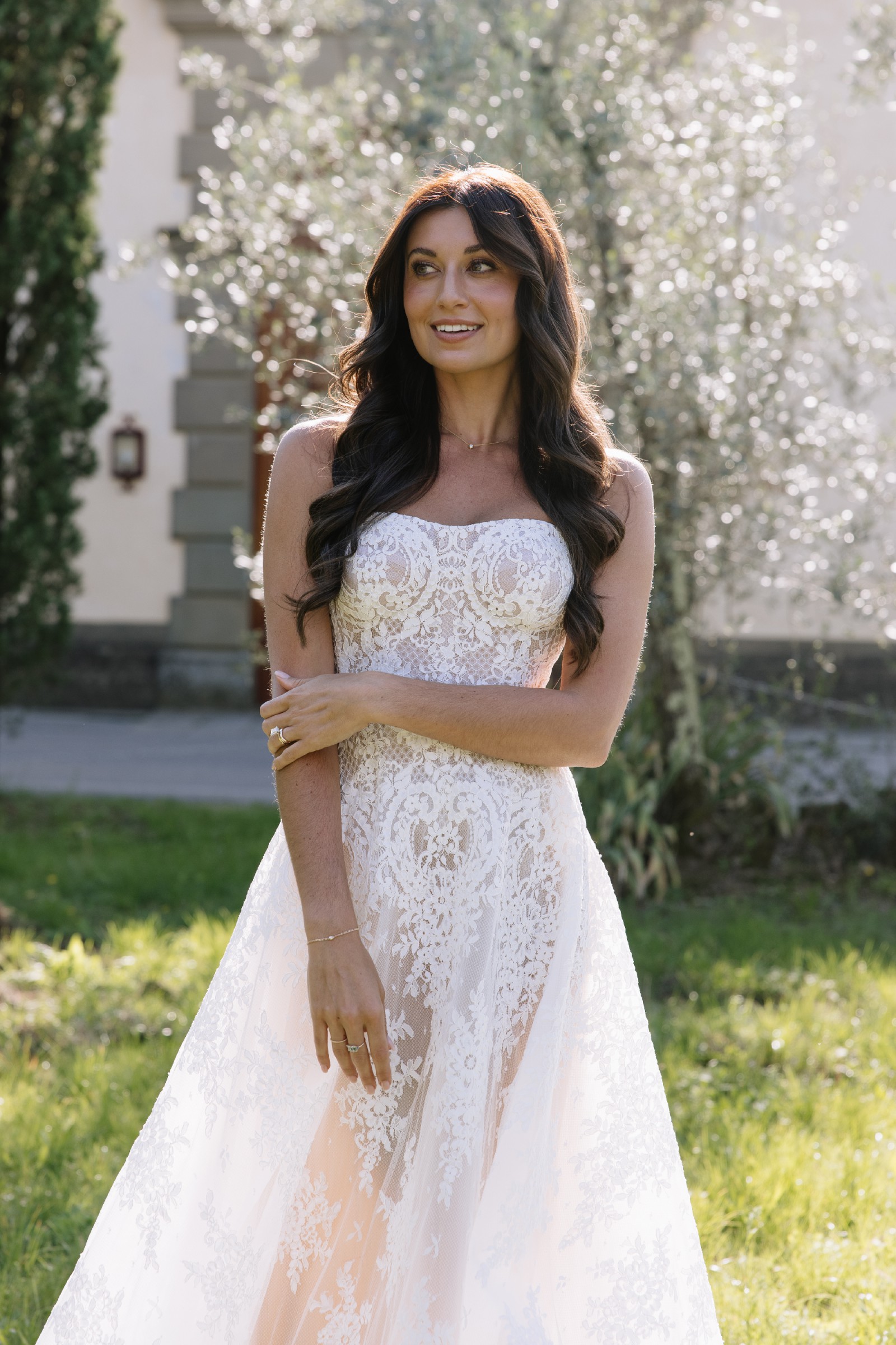 I purchased this stunning gown — the Hailey by Dana Harel — from Ladies of Lineage in Charlotte, NC, and wore it once for my wedding in October 2025 in Tuscany, Italy.