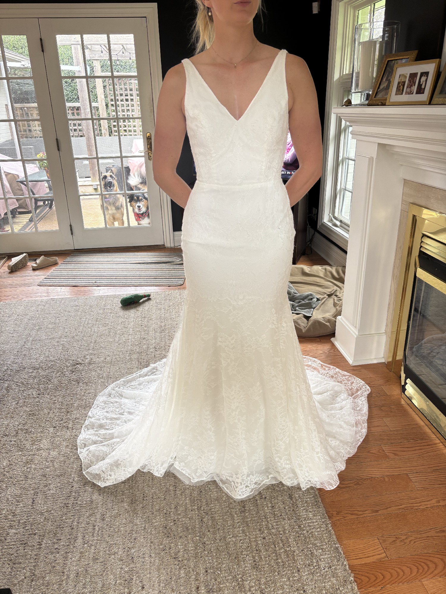Vera wang, size 10 NEVER WORN, NO ALTERATIONS DONE!! It’s a true size 10 since no alterations have been done to it. I love this dress but decided to sell it as I ended up buying 2 dresses and have decided to go with the other one for my wedding. Has just gone from me trying it on in the store to my closet. Retails for $2,950. Asking $2100. My loss is your gain!