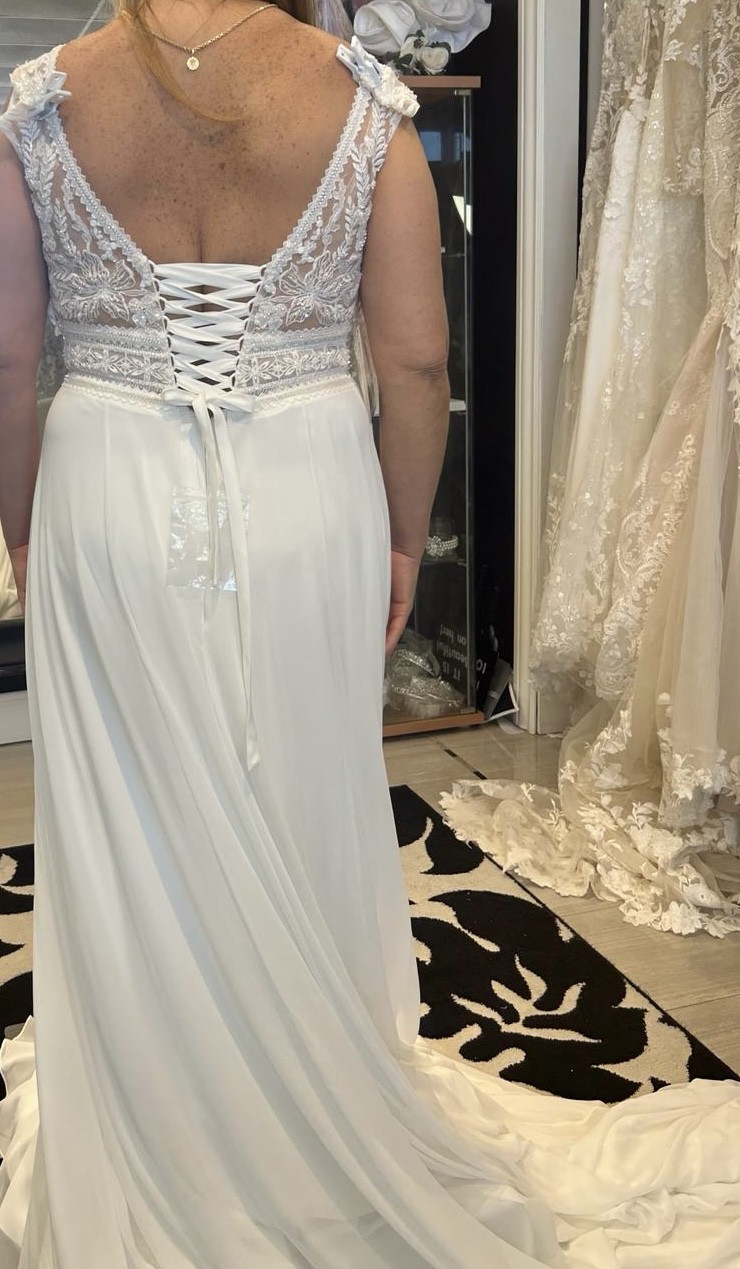 Beautiful dress. Confortable. You can raise the train of the dress. Its in very very good conditions.