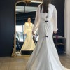The floor-length gown hugs your curves in all the right places, gently cascading to the ground to create a stunning flowing effect with every step. Its intricate detailing and luxurious fabric effortlessly enhance the figure, allowing you to feel both confident and radiant as you celebrate your love.