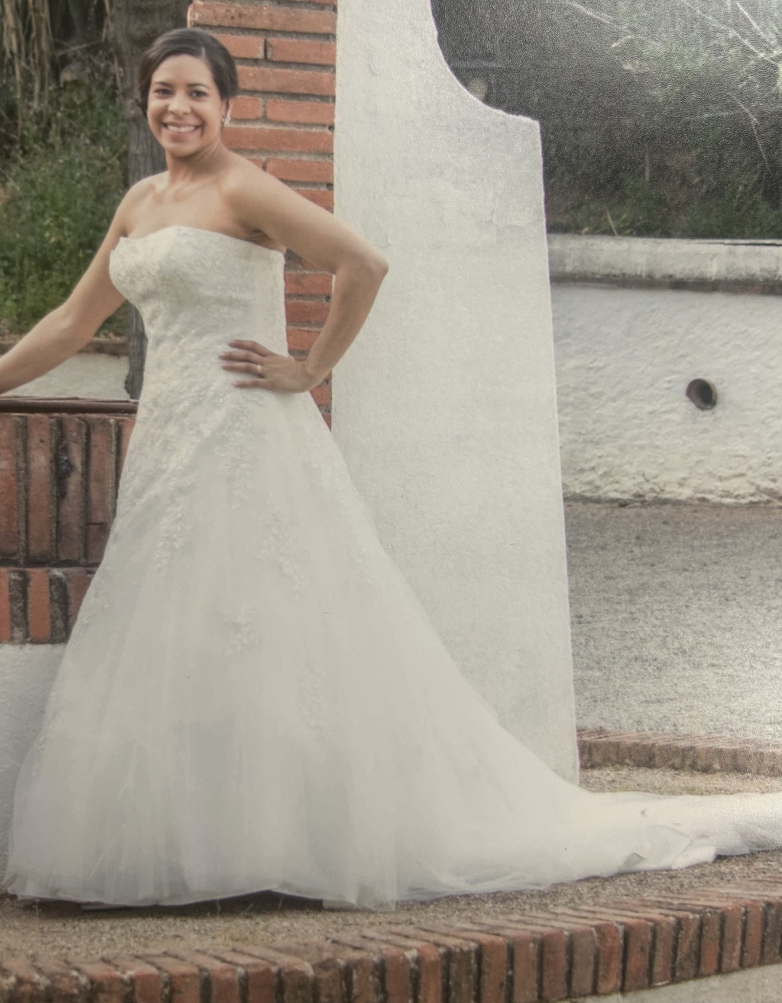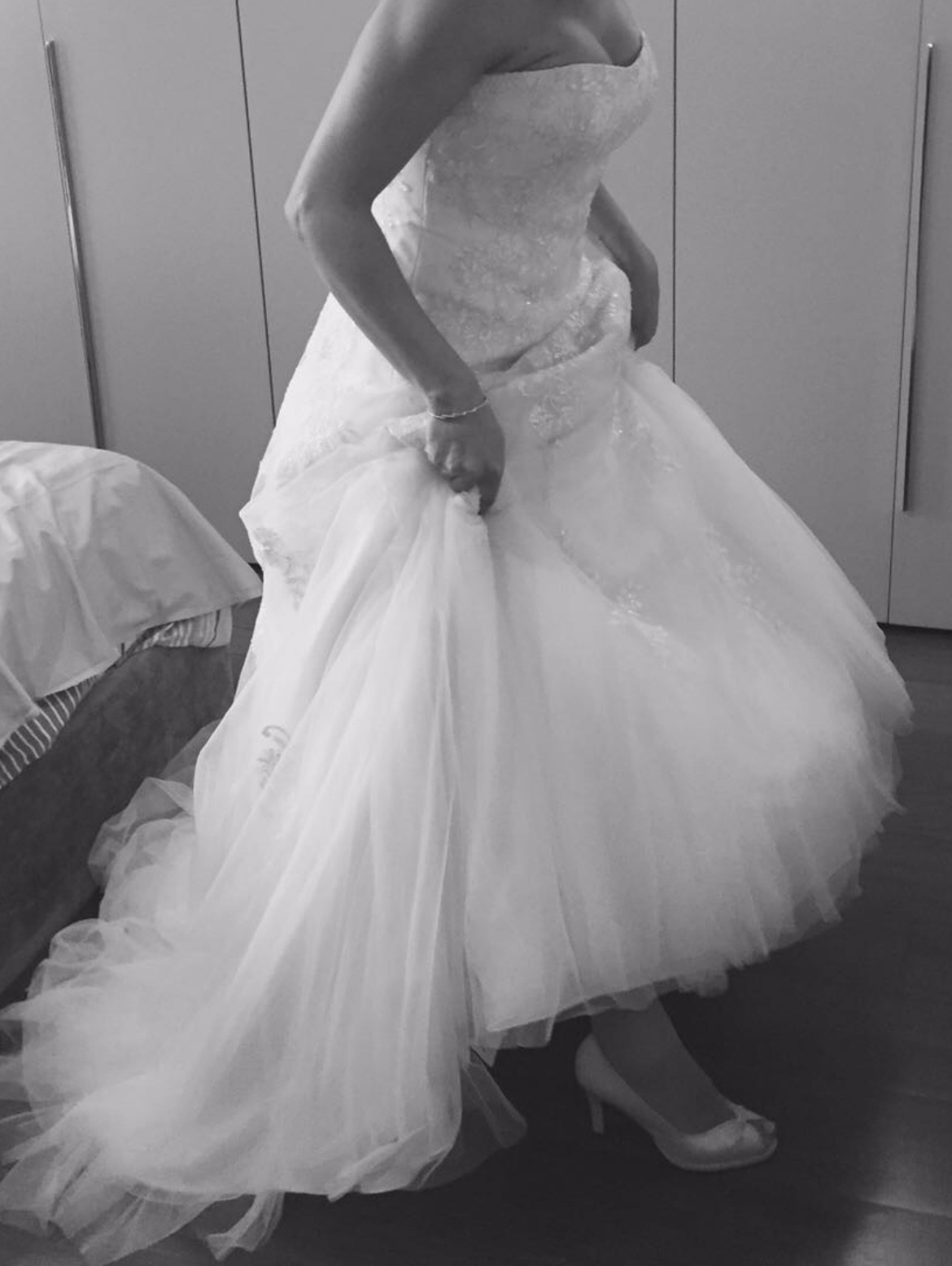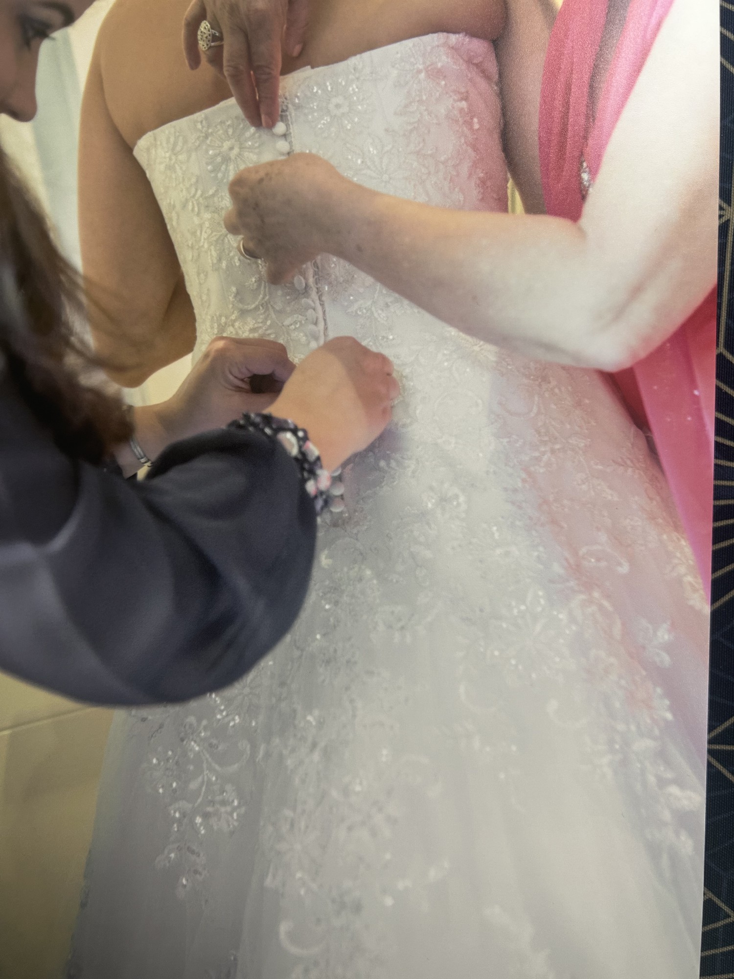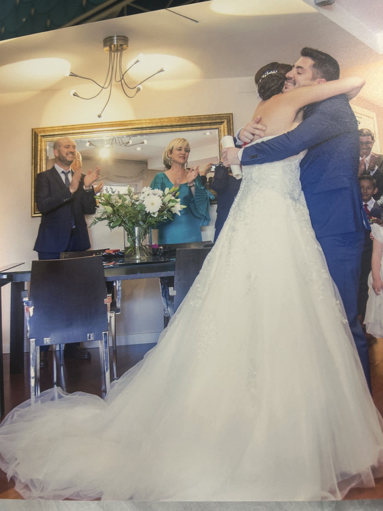 I'm selling a beautiful Aire Barcelona wedding dress, worn only once. Romantic princess style, with a full skirt, fitted bodice, and exquisite details. Dry-cleaned, includes a can-can and original bag. Only a few buttons on the bodice need to be sewn on, which are included. Perfect for a bride who wants to feel like a princess without spending a fortune. 👑