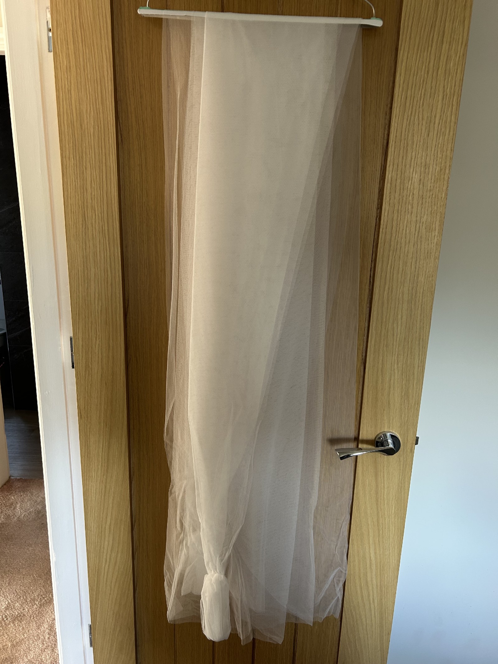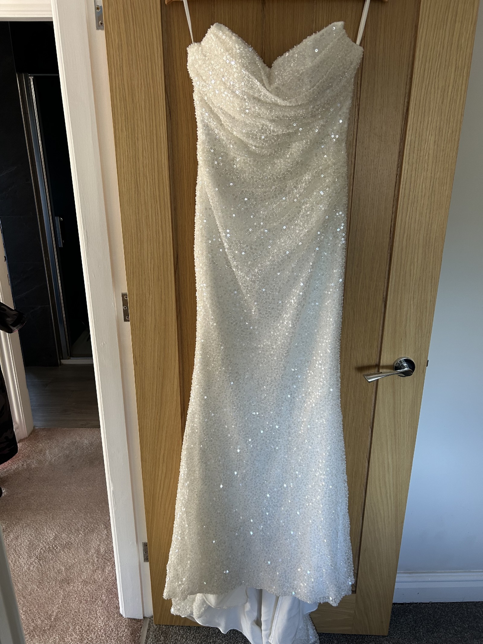 Worn once, fully dry cleaned including detachable sleeves and veil