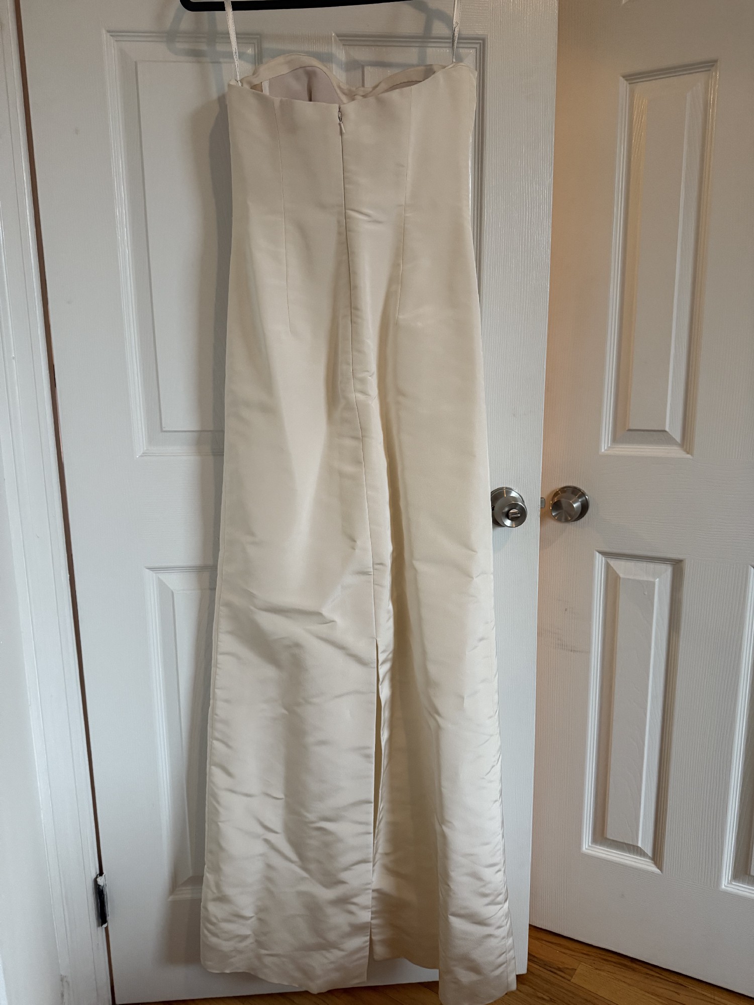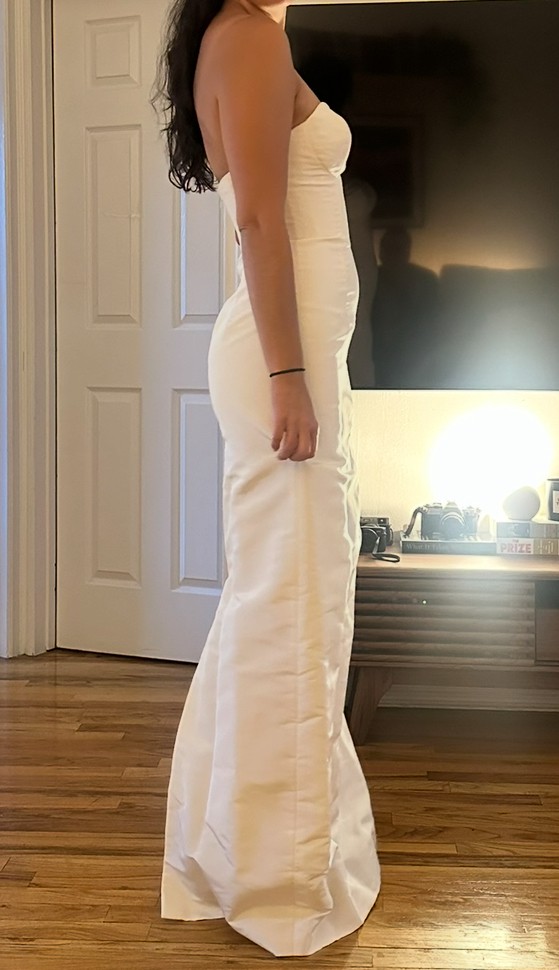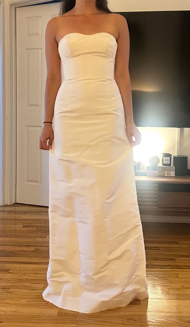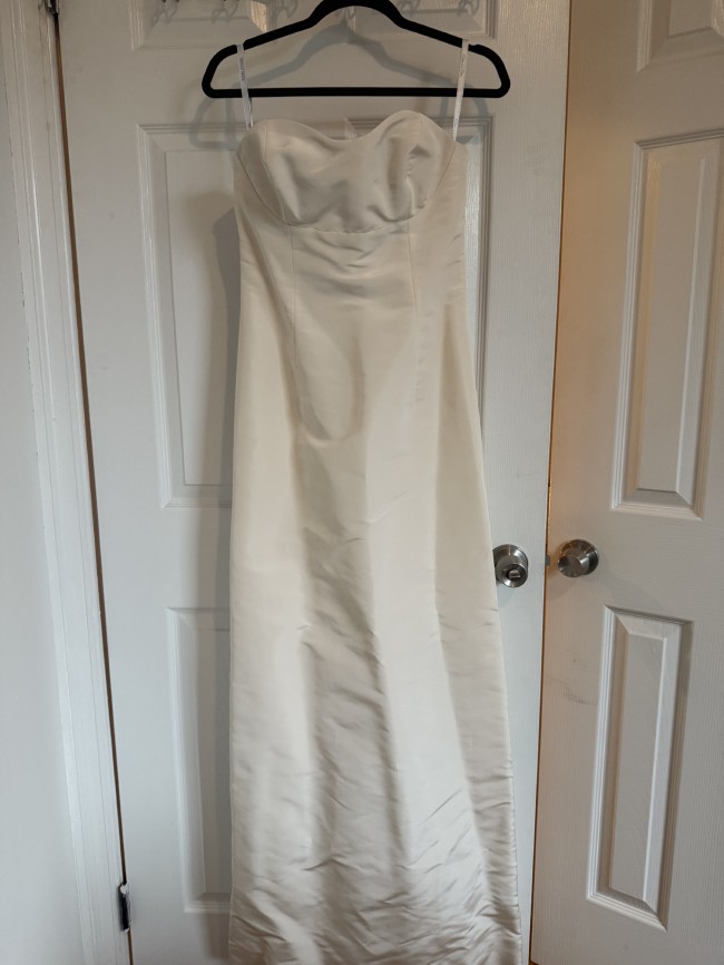 Purchased this dress at the Oscar De La Renta Sample Sale 2025 in NYC. It has a sweetheart neckline and is strapless. I have not altered it at all. Beautiful dress!