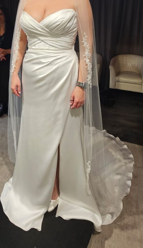 This dress is a size 12 and has only been worn once, so it’s in pristine condition and ready for its next romantic adventure. If you're looking for a dress that combines modern features with traditional elegance, this is the one for you. I can’t wait for another bride to create beautiful memories in this incredible gown!