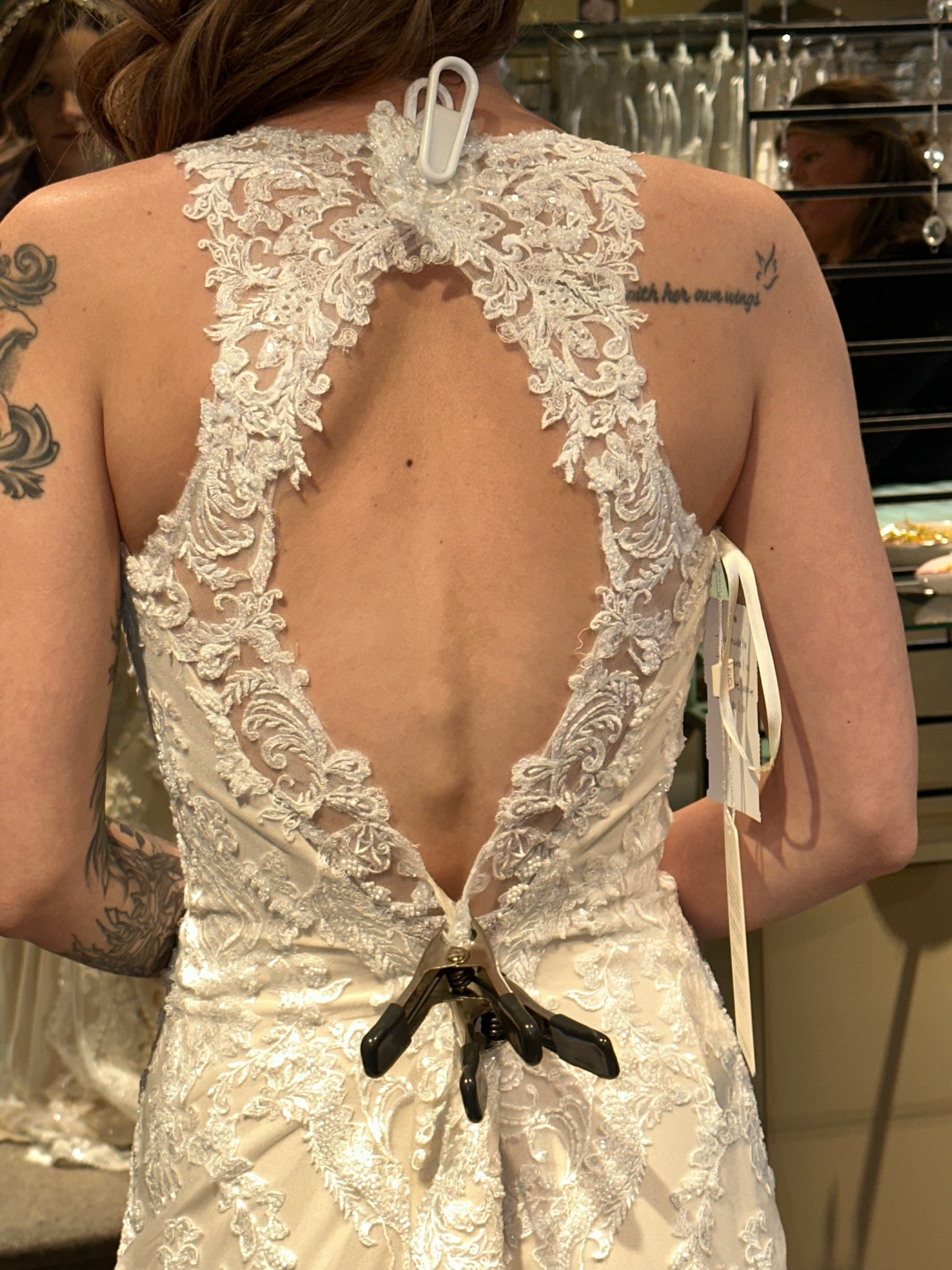 Only alterations were enhanced cups put in for better support, hem shortened to fit 5'2" inch woman in 2.5" heels and a bustle straps added for after ceremony.