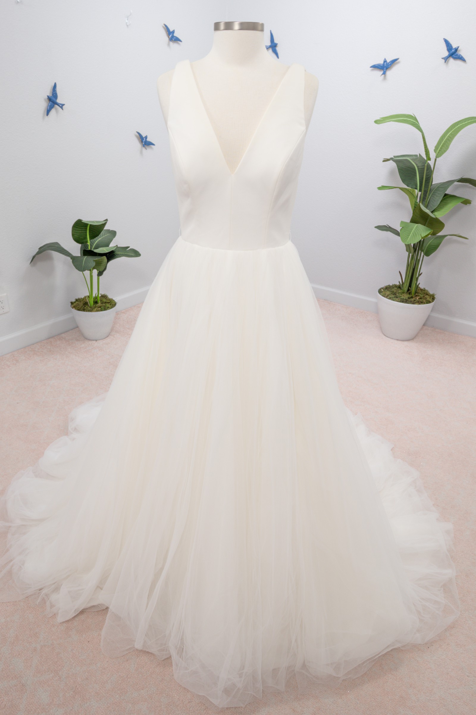 The dress is an unaltered sample and has been very well taken care of in our shop