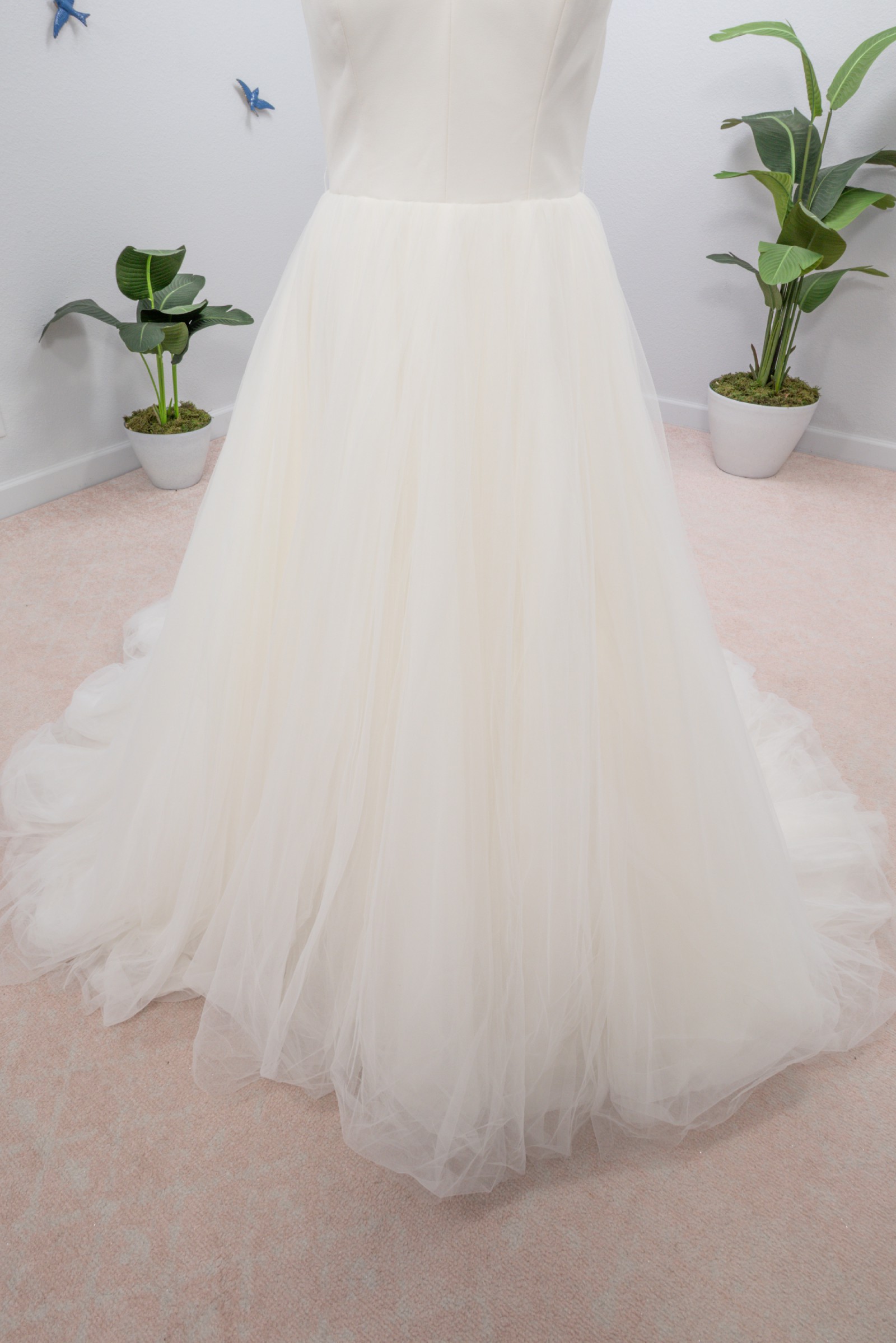 All of our dresses are either samples or new which means they have never been altered. All wedding dresses require some alterations. Typically a hem to length, a bustle, and brought in to be shaped to your body. Wedding dresses can be brought in a size or two on any of your measurements but can only be let out .5-1.5” depending on the dress. Letting out a dress can be a more tricky alteration and should only be done by a more experienced Bridal seamstress. We typically see alteration costs run between $300-750 depending on the work needed and local market. We do not provide any alterations for dresses sold on Stillwhite.