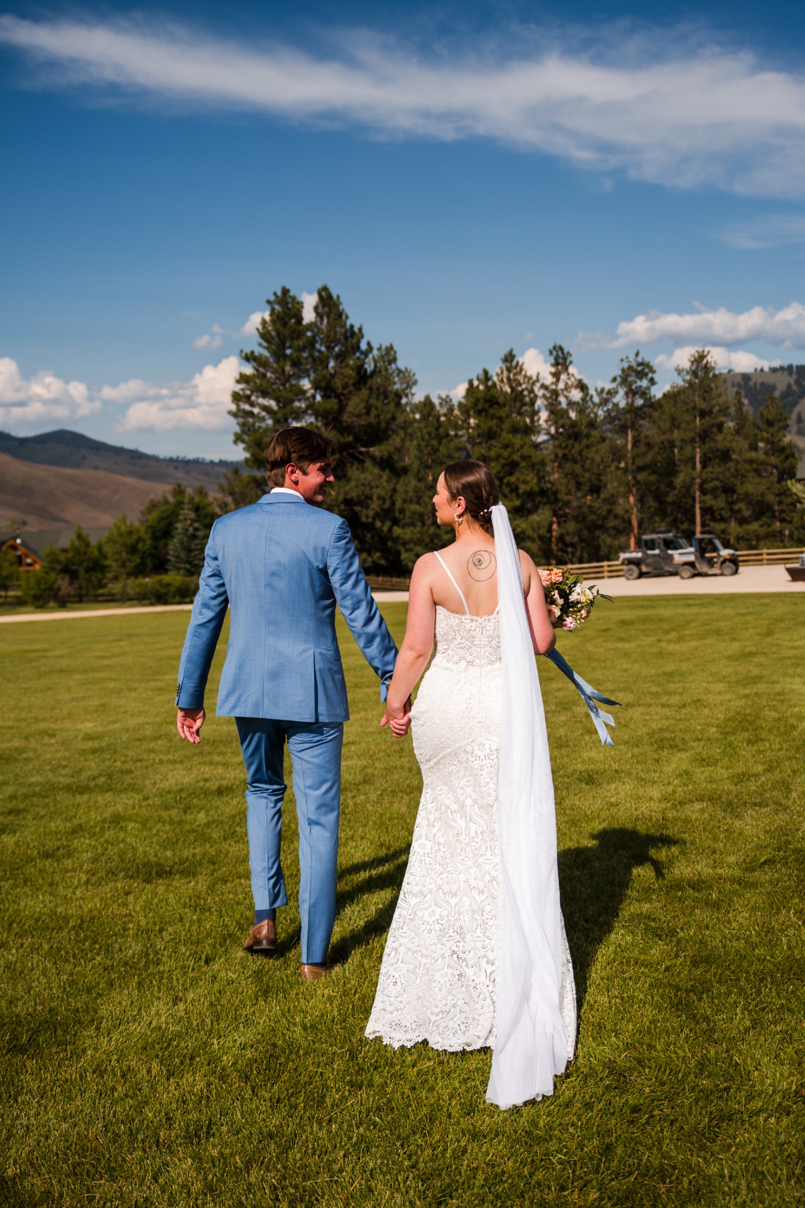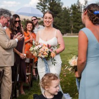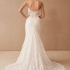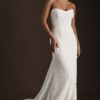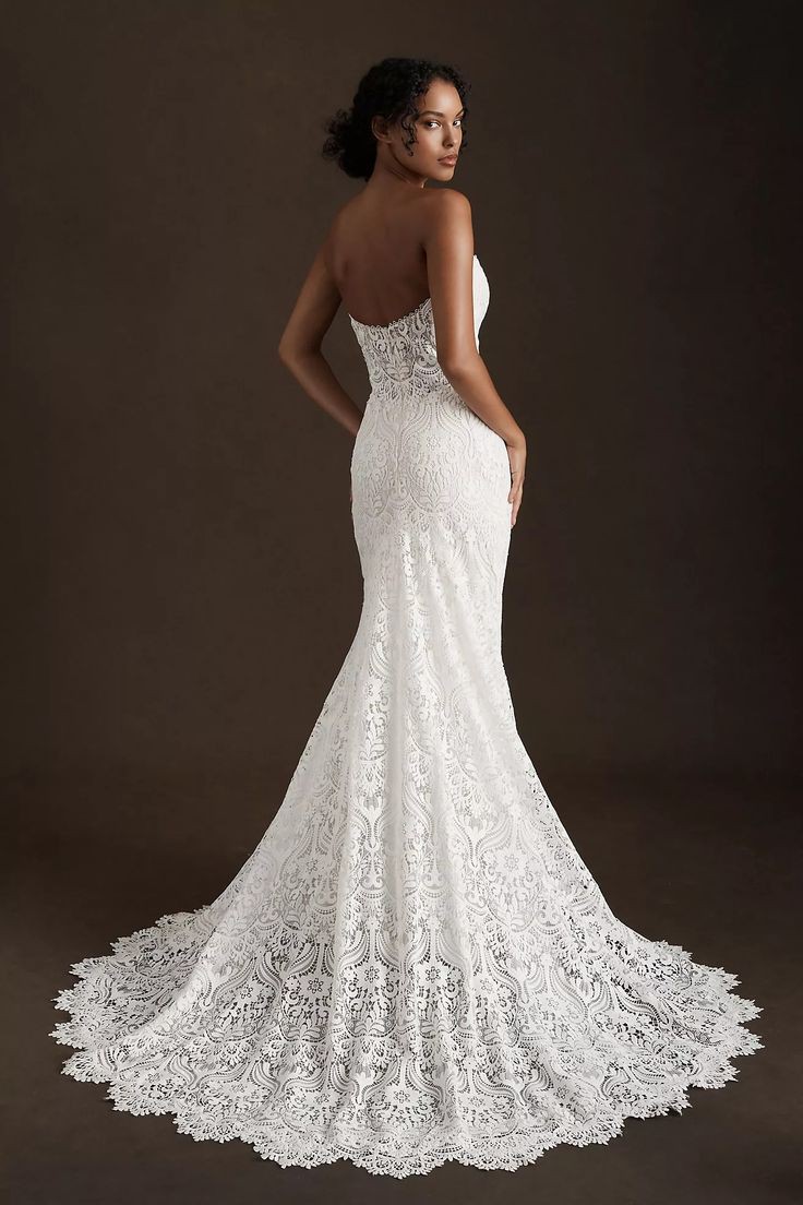 This Yesenia dress by Willowby by Watters is the epitome of elegance and romance. From the moment I slipped into it, I felt like the best version of myself. The fit and flare silhouette hugs all the right curves, showcasing a figure-flattering form that made me feel confident throughout my special day. The beautiful ivory lace adds a touch of timeless charm, while the strapless neckline highlights the neckline and shoulders beautifully. The long lace train made a lovely statement. The corseted bodice made me feel extra snatched, though it did not prevent me from dancing the night away.