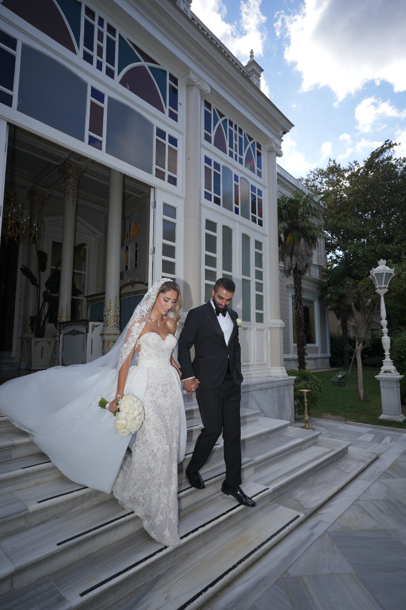 In addition, I had my tailor custom-make a detachable overskirt and matching veil, allowing you to create three distinct bridal looks in one: