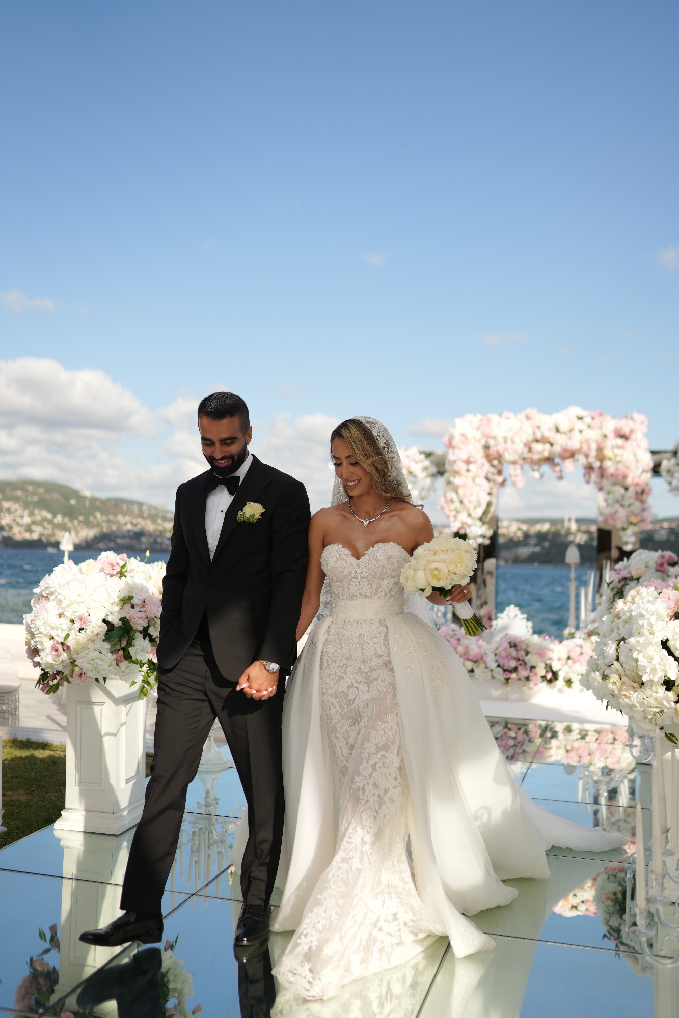 3-With the custom overskirt and veil for a grand, dramatic entrance.