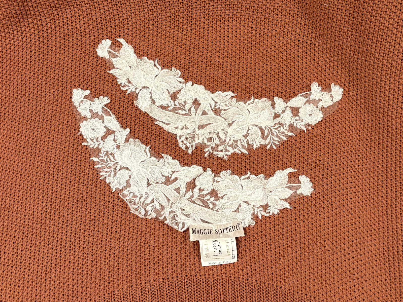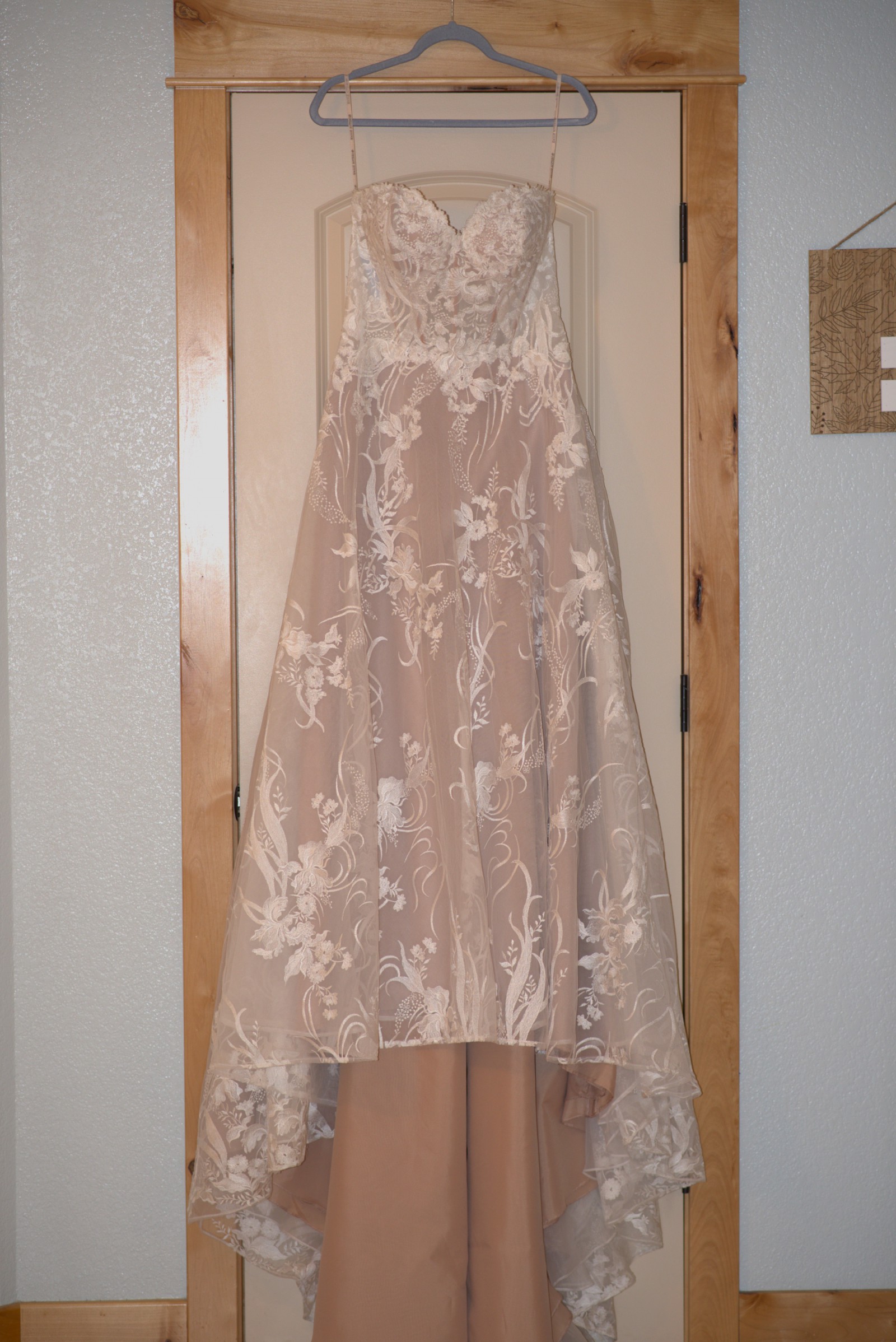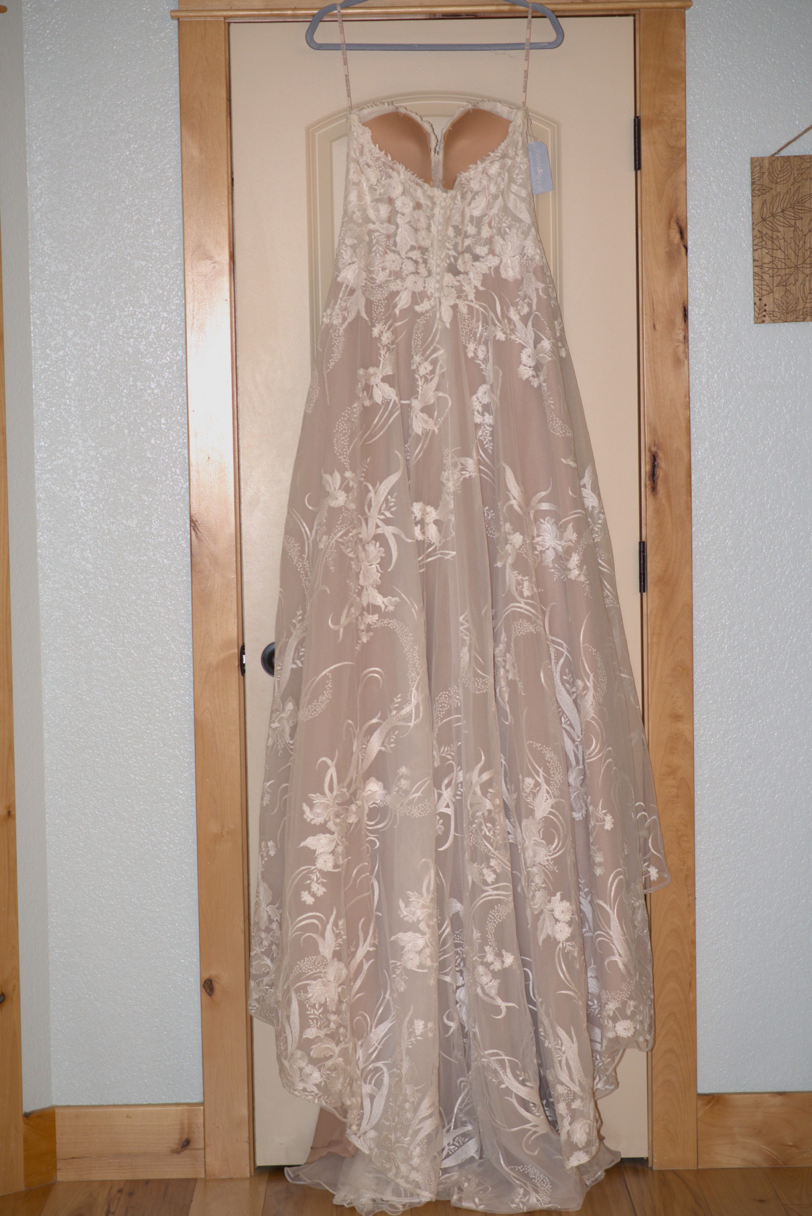 This gown has never been worn. I purchased it from a small, high-end bridal boutique with the intention of getting married in the spring. However, my wedding was changed to winter, so I ended up going with a warmer dress. * No visible signs of wear - NEW - EXCELLENT condition. * No rips, tears, spots, or stains.