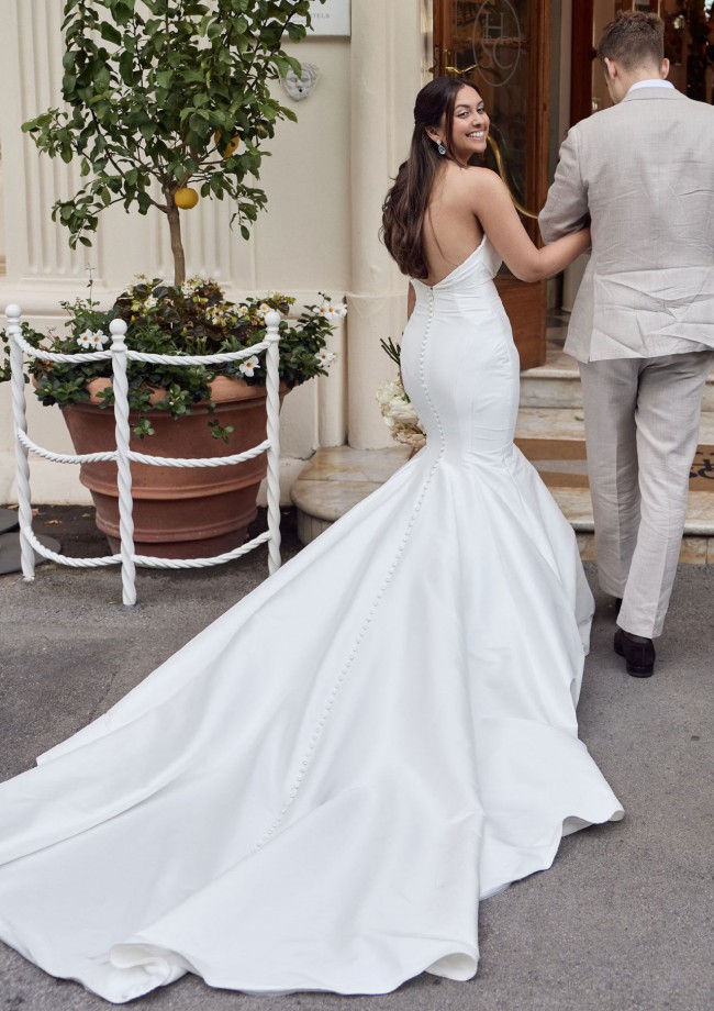 This stunning Seraphine wedding dress by Elysee Bridal was the dress of my dreams, and I hope it can be the same for you. The mermaid silhouette hugs your curves in all the right places, creating an elegant hourglass shape that feels both romantic and confident. The beautiful curve neckline softly frames the décolletage, while the backless design adds a modern twist that will leave your guests in awe as you walk down the aisle.