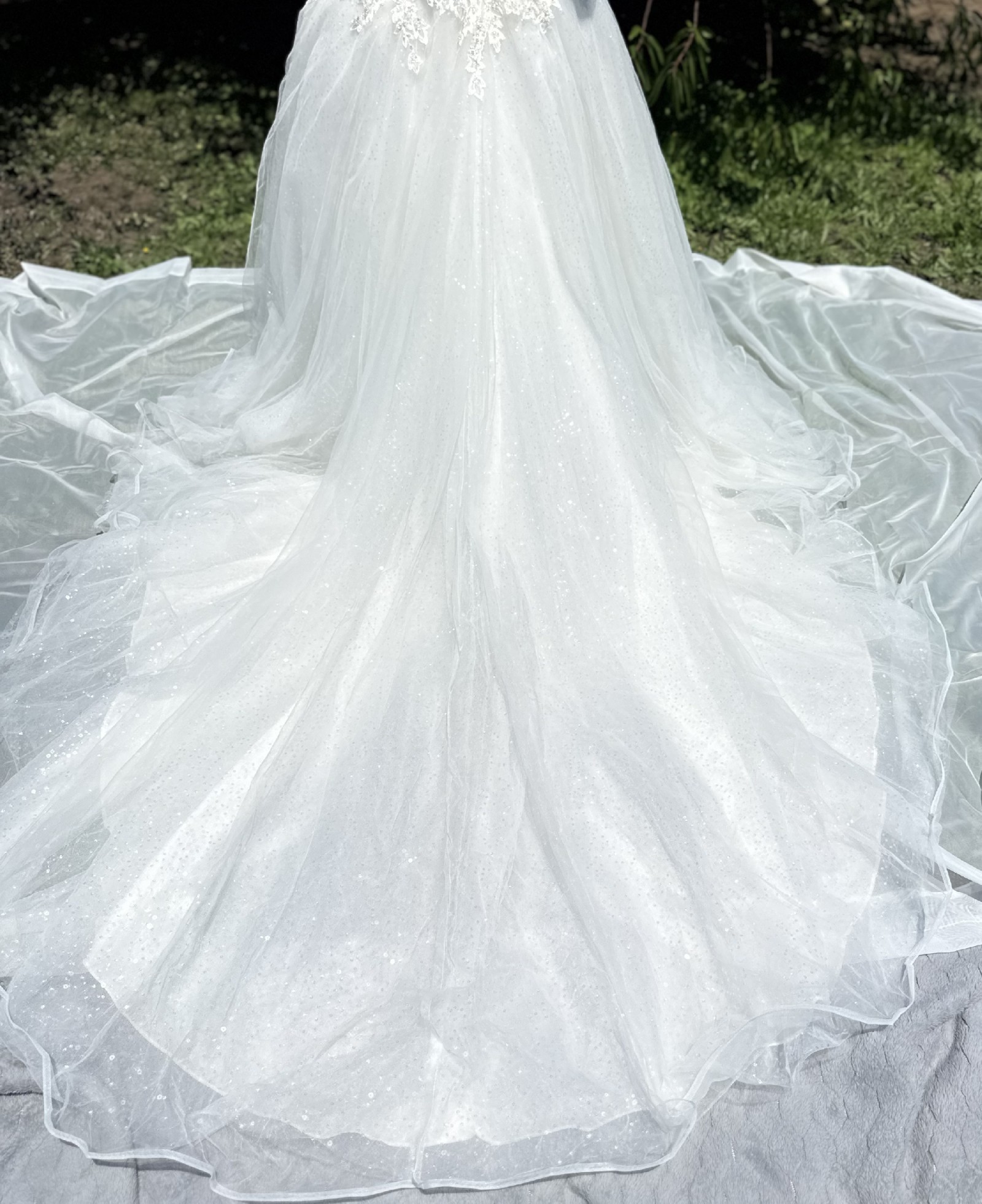 This dress is ideal for a bride who seeks to make a memorable statement, combining traditional elegance with contemporary style. Let this enchanting gown be the fabric of your love story, as it captures the essence of romance and celebration on your magical day.